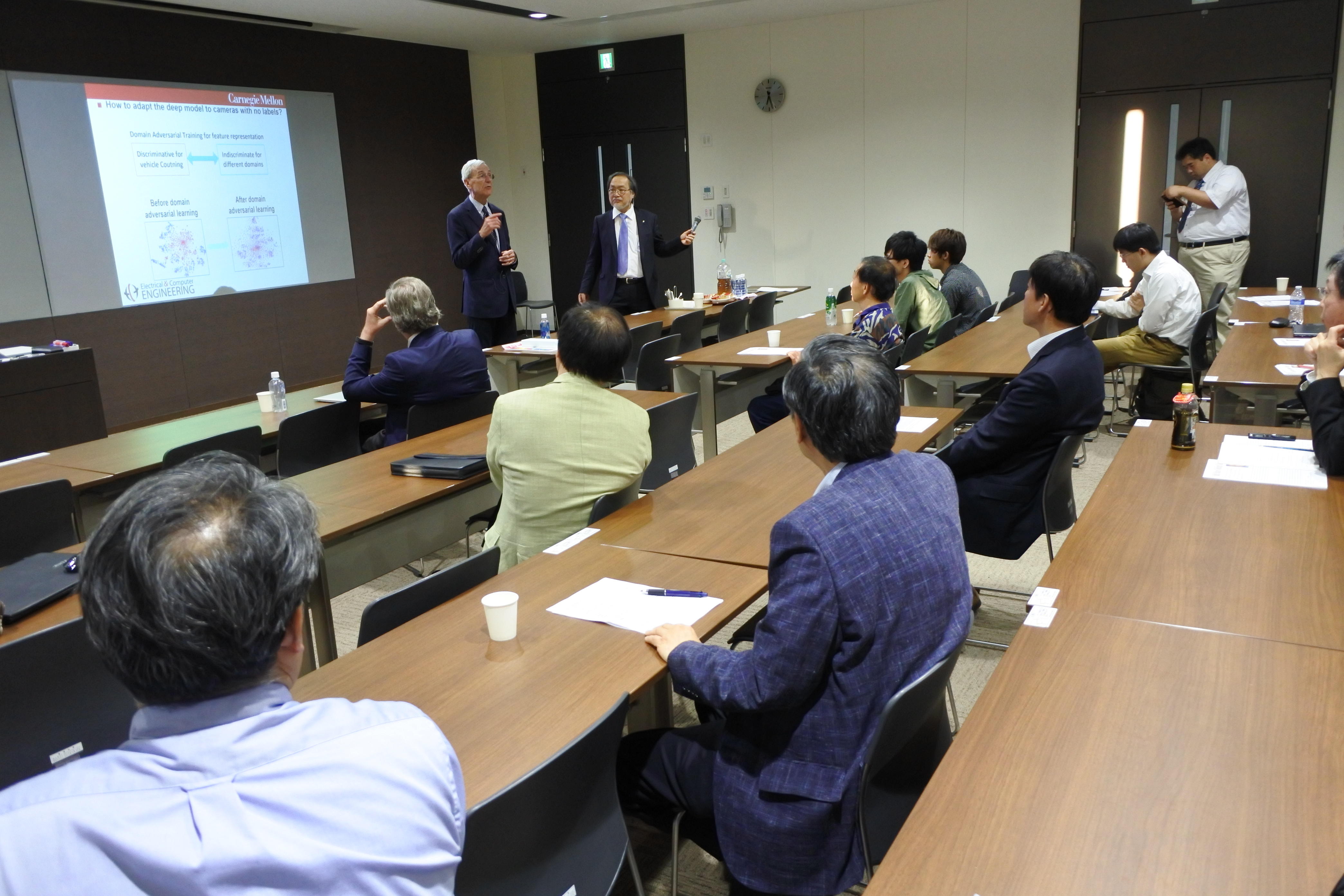 福田教授が司会を務め、IEEE2019年会長と次期会長が顔を合わせるという大変すばらしい機会に恵まれ、IEEE現会長のジョゼ・ムーラ教授(カーネギーメロン大学、米国)とIEEE2016-2017地区理事のマチェイ・オゴジャウェック教授(ヤギェウォ大学、ポーランド)がそれぞれ英語で講演しました。本学学生や学外の研究者ら約50人が出席し、世界最先端の研究概要を聴講しました。質疑応答も活発に行われ、参加者は大いに刺激を受けていました。