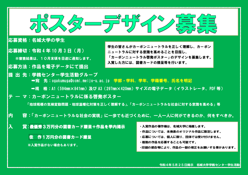 在学生・教職員/ニュース 【学部生・大学院生対象】カーボンニュートラル啓発ポスター募集