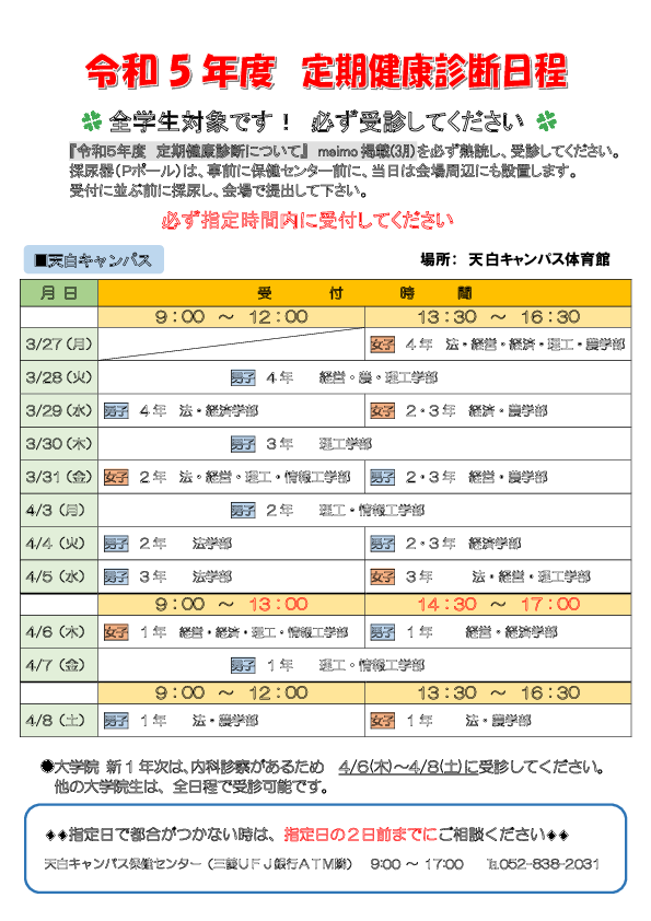 在学生・教職員/ニュース 令和5年度 定期健康診断の実施について