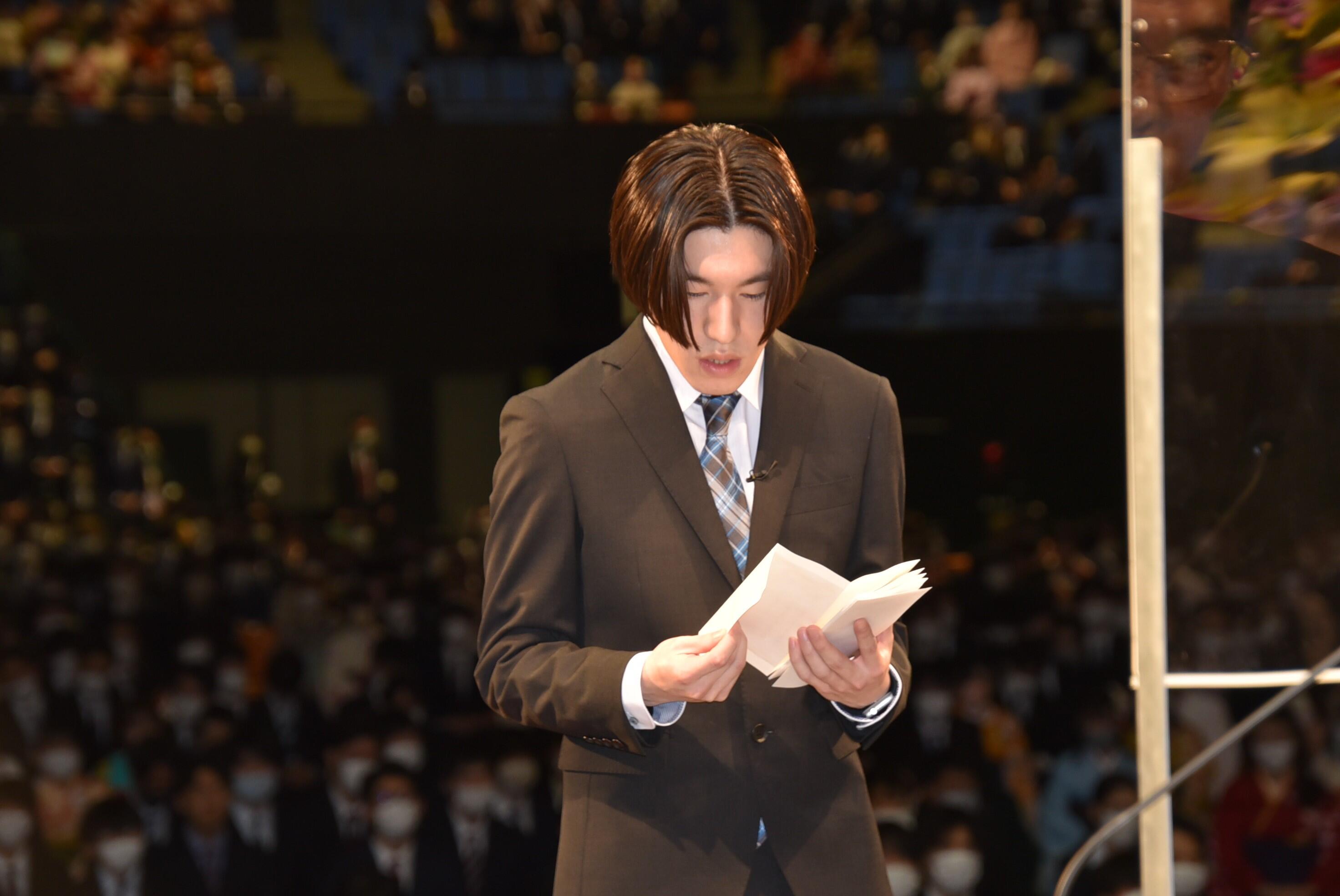在学生送辞は光岡日菜子さん(理工学部電気電子工学科)、修了生答辞は平岡礼鳥さん(総合学術研究科)、卒業生答辞は吉田大翔さん(経済学部経済学科)がそれぞれ述べました。平岡さんは「コロナ禍でこれまでとは異なる対応に迫られましたが、先生方のおかげで学業に専念することができました」と感謝し、吉田さんは「これから歩む道には未解決の問題が山積していますが、名城大学で学んだ知識で困難に立ち向かいます」と誓いました。