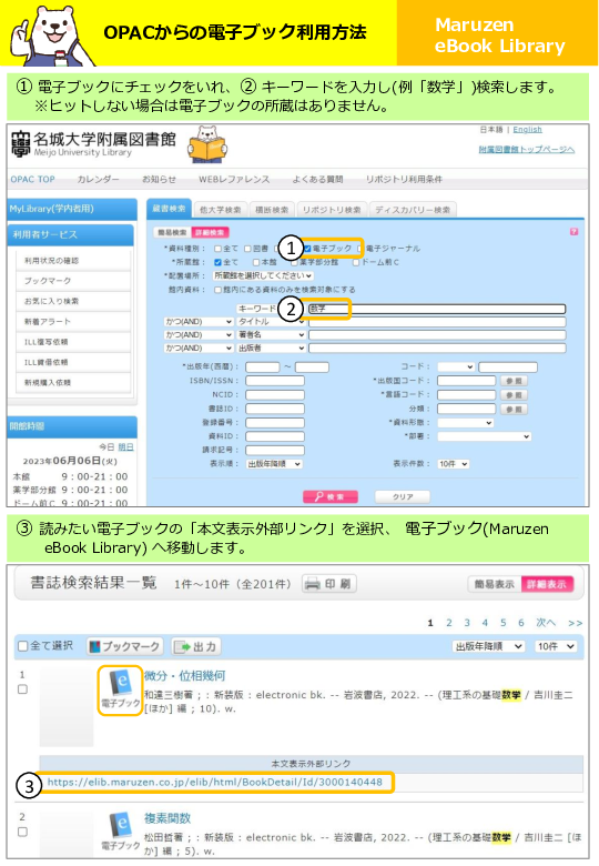 在学生・教職員/ニュース 【附属図書館】電子ブック(Maruzen eBook Library)がOPACで検索可能になりました!