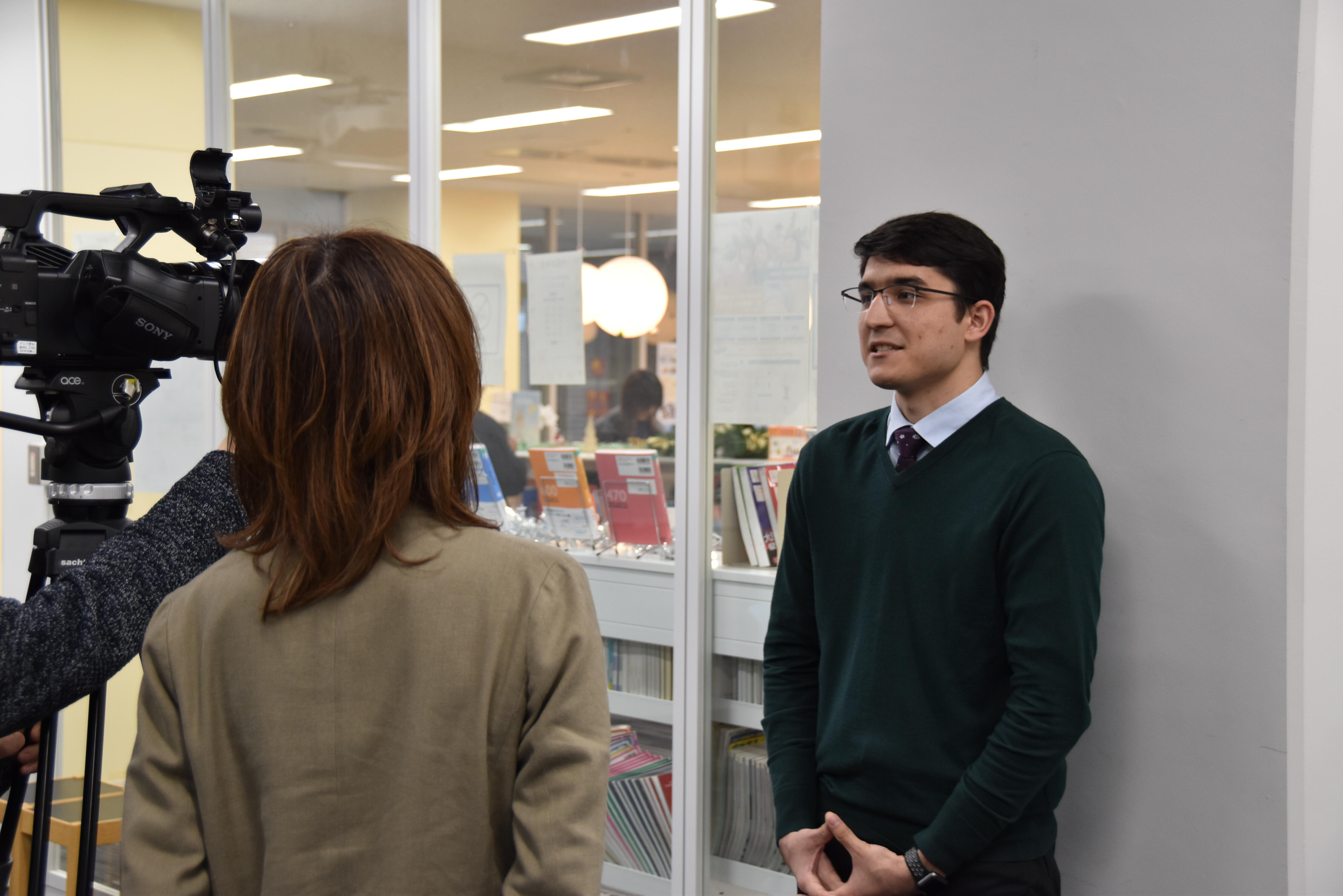 テレビ愛知のインタビューを受ける