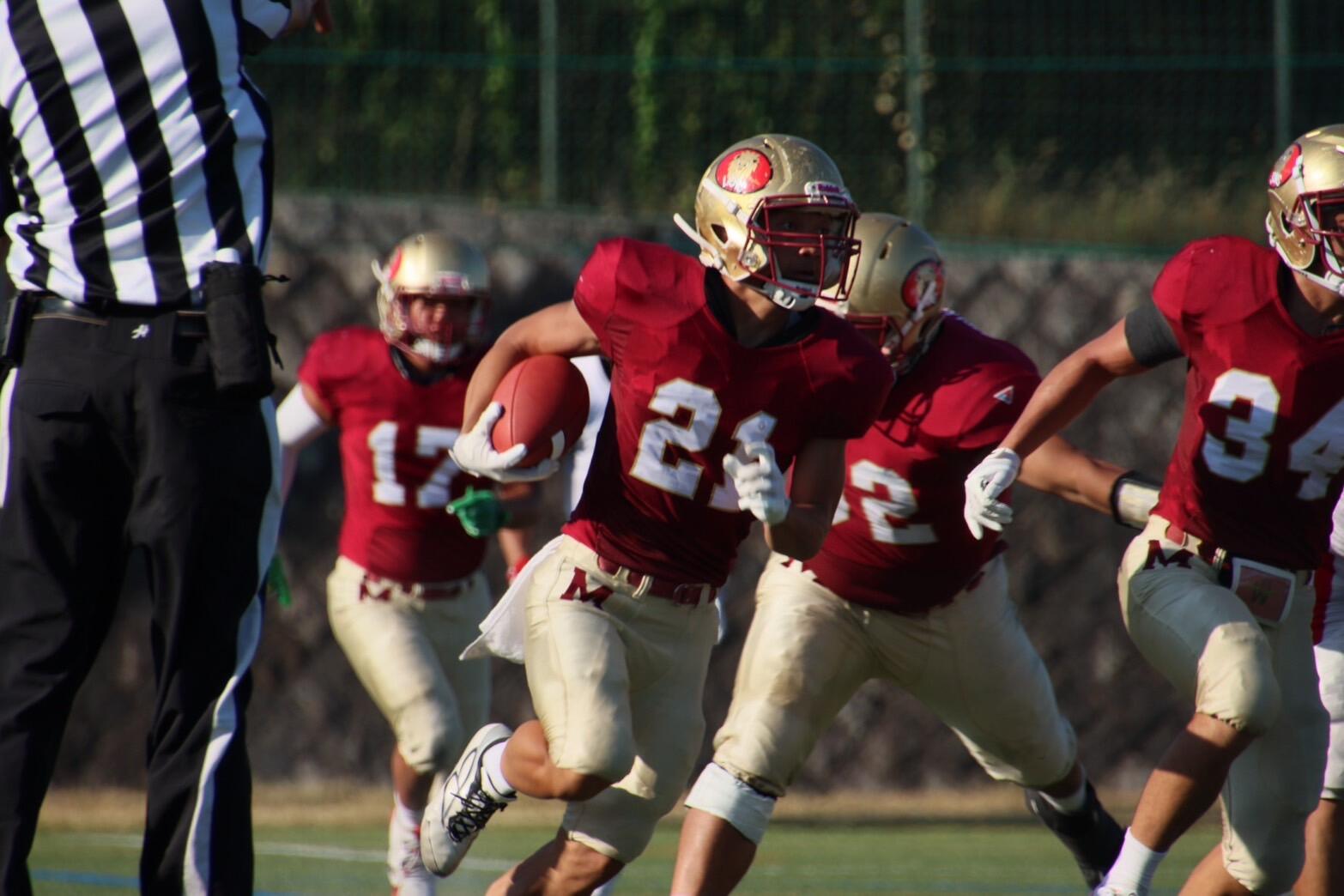 ディフェンスのタックルをかわし、華麗なランアタックを決める!