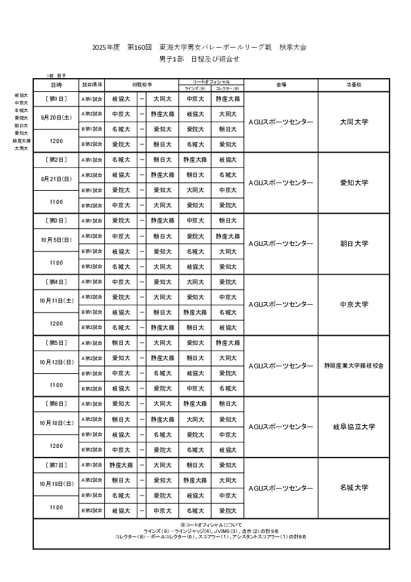 9月20日(土)12:00~ | B第1試合 | vs愛知大学 | AGUスポーツセンター |