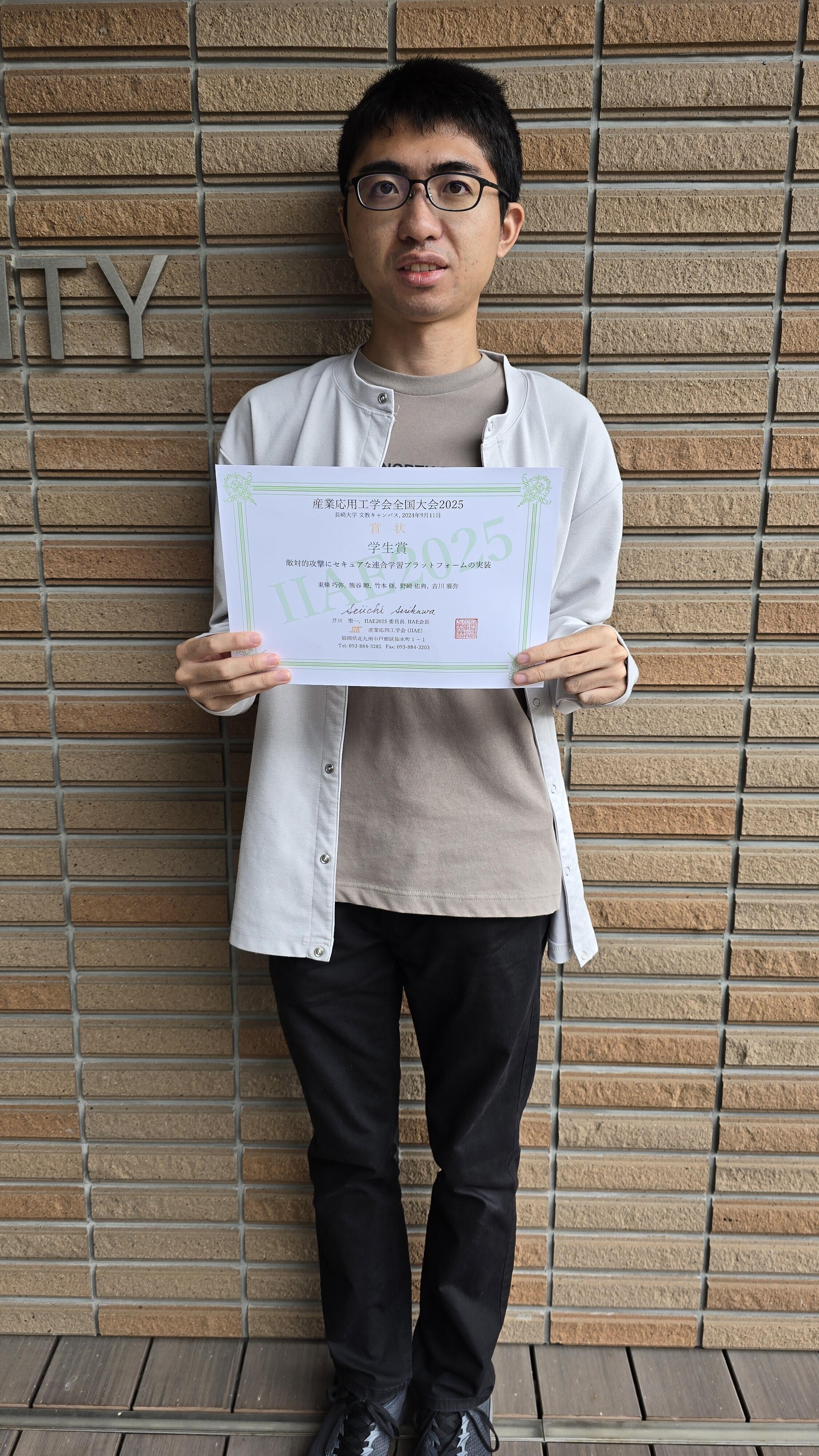 トップページ/受賞 理工学研究科の東條巧弥さんが産業応用工学会全国大会2025で学生賞を受賞