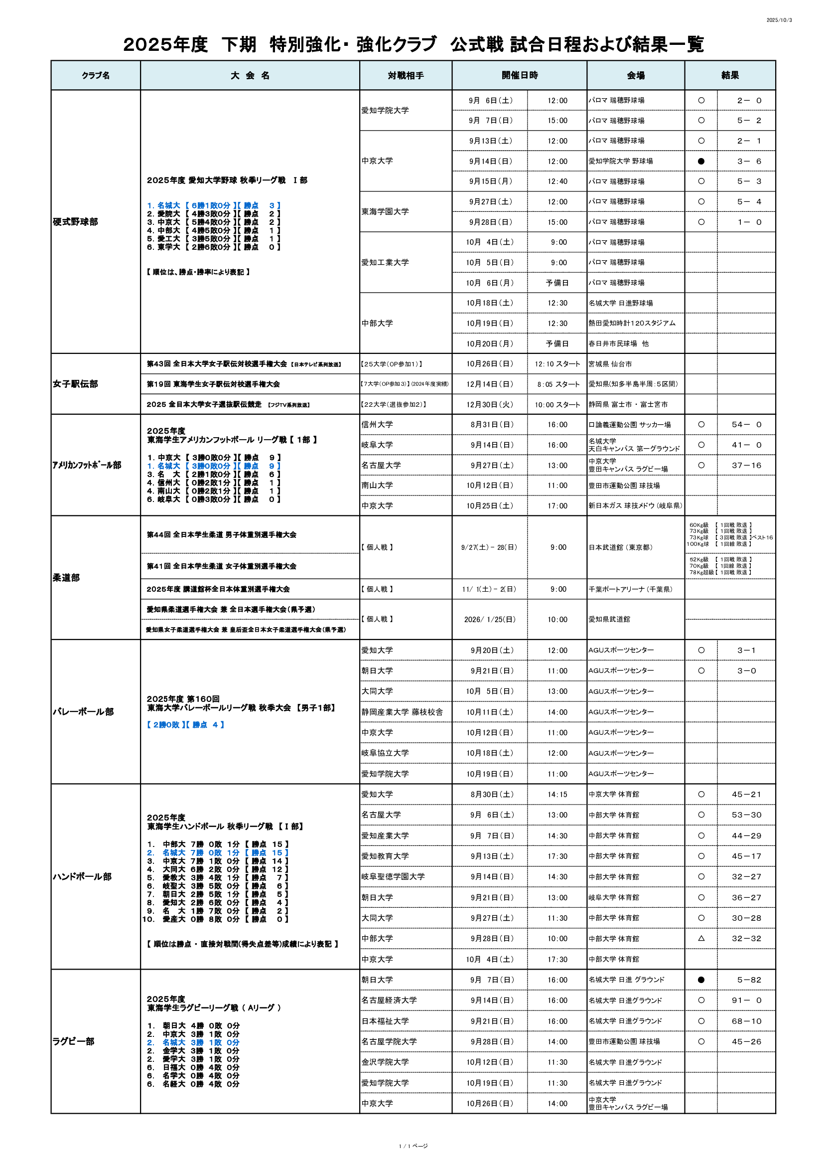 在学生・教職員/クラブ 今週の特別・強化クラブ 試合結果および試合予定