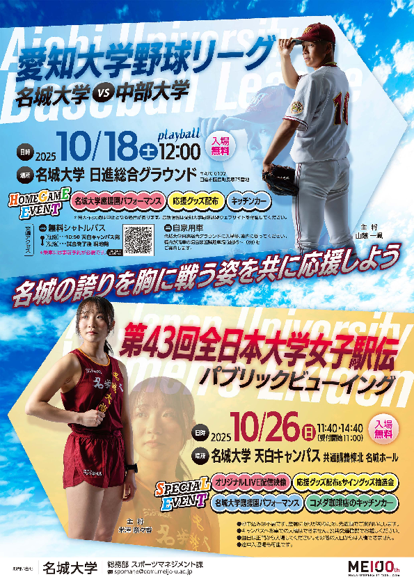 当日は、名城大学天白キャンパスに大型スクリーンを設置し、LIVE映像を全員で応援します。応援グッズ配布や応援パフォーマンス、キッチンカー出店など、会場全体で駅伝部を後押しするスペシャルイベントです。ぜひご来場ください。