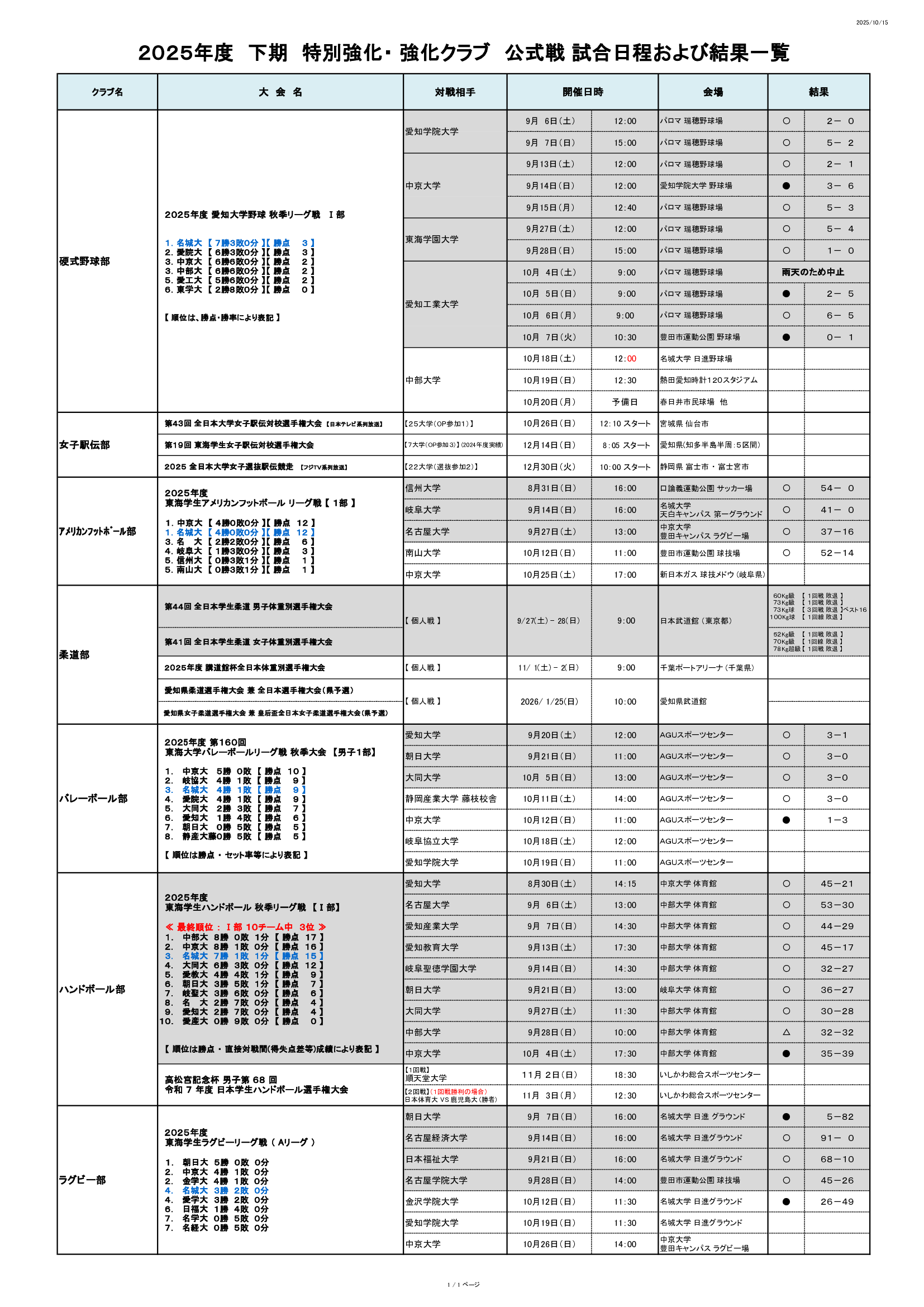 在学生・教職員/クラブ 今週の特別・強化クラブ 試合結果および試合予定