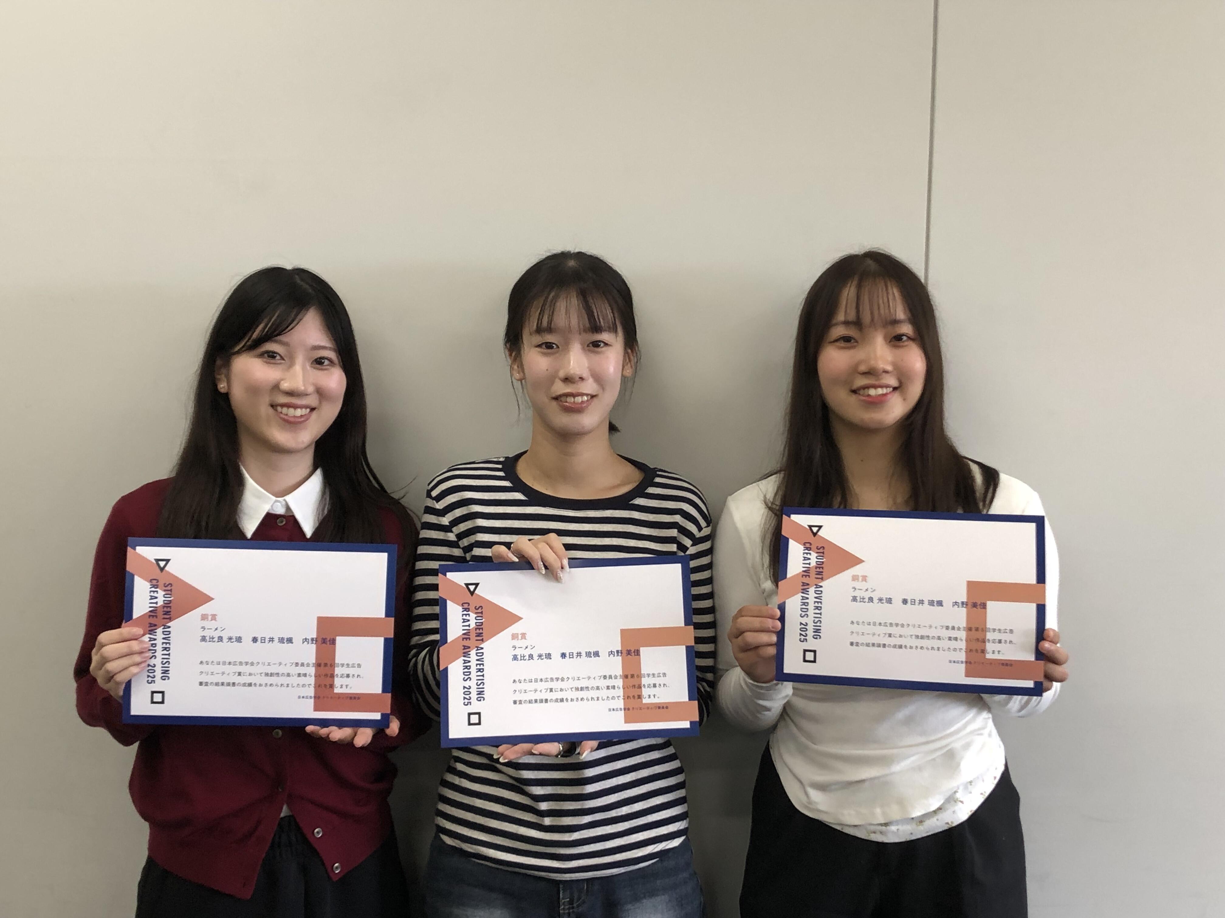 トップページ/受賞 経営学部 山岡隆志教授専門ゼミナールの高比良光琉さん、春日井琉楓さん、内野美佳さんが日本広告学会 第6回学生広告クリエイティブ賞で銅賞を受賞