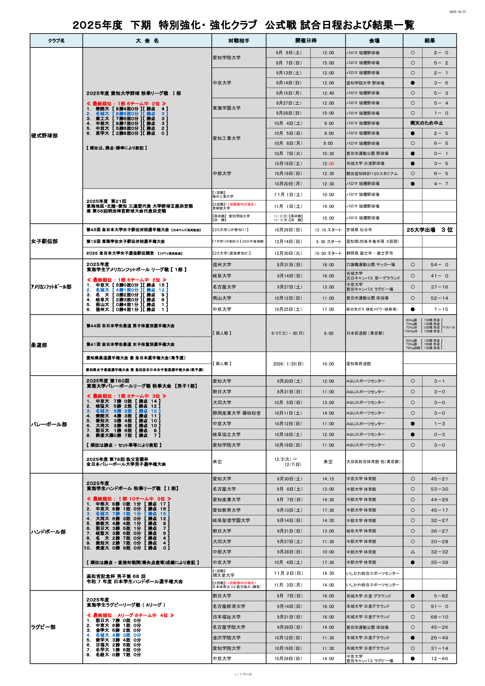 在学生・教職員/クラブ 今週の特別・強化クラブ 試合結果および試合予定