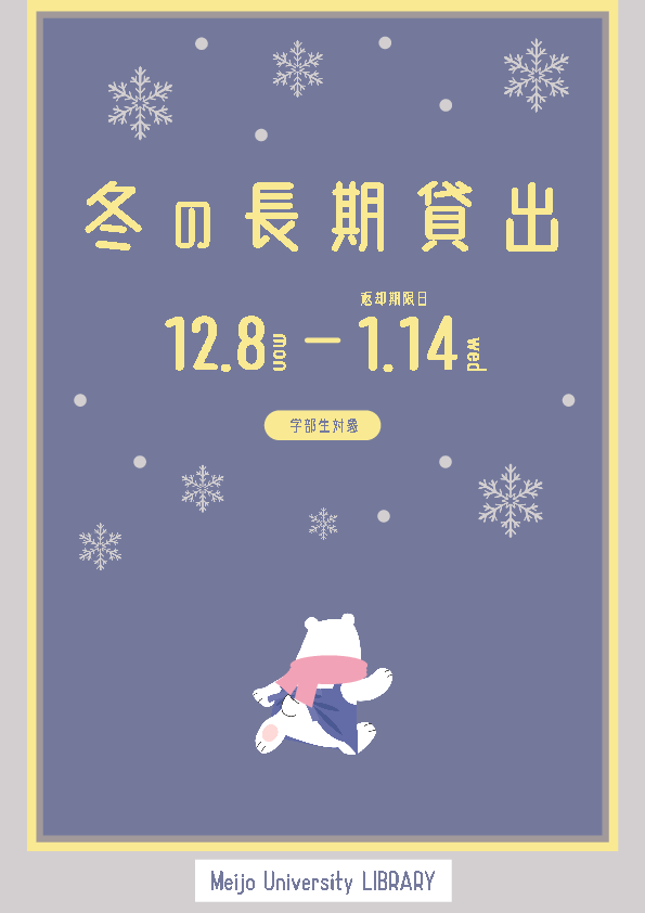 ■長期貸出貸出開始日:12月8日(月)返却期限日:1月14日(水)*更新を行った場合は、1月28日(水)となります。