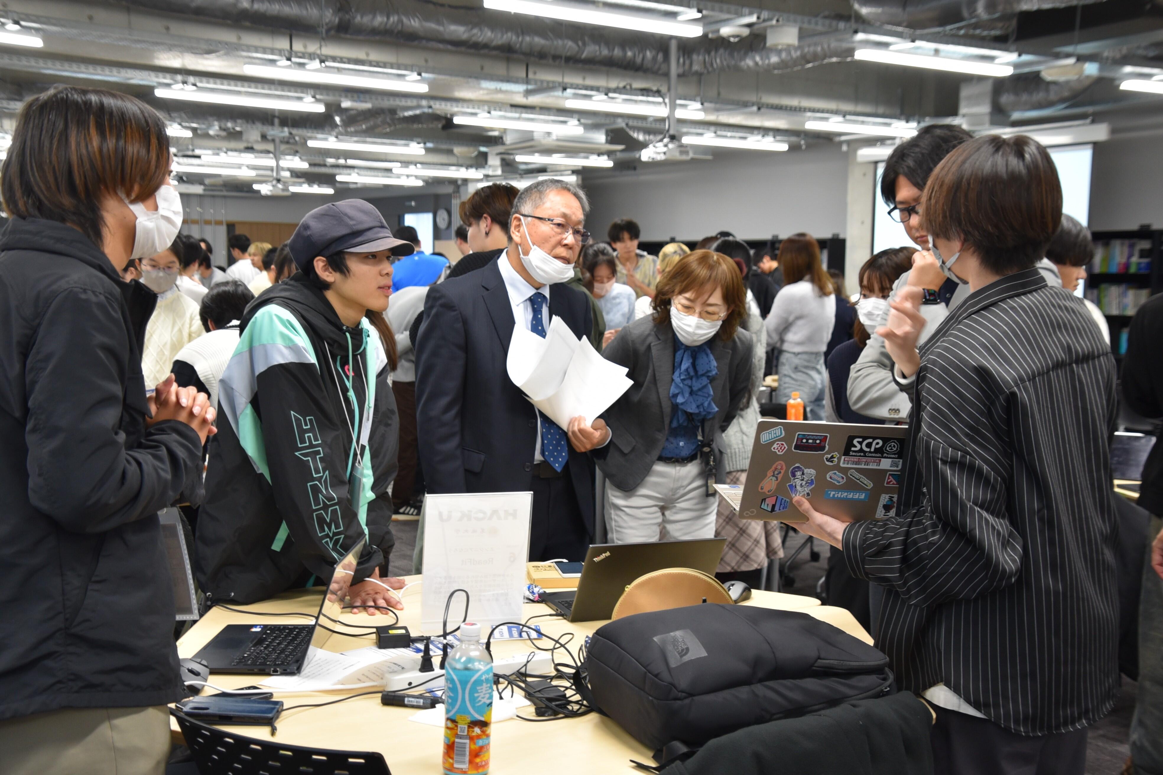 名城大学賞を贈った田中教授は講評で「毎年クオリティーが上がっていてとても悩みました」と振り返り、名城大学学長賞を手渡した野口学長は「どれも出来が良く、優劣つけがたい作品ばかりでした。今後は社会貢献も意識してプロダクトの開発を進めてほしい」と呼び掛けました。最後に旭准教授が「今回は生成AIを使い、プロダクトに組み込んだチームが多く、作品のクオリティーを上げたことがトピックスでした」と総括しました。