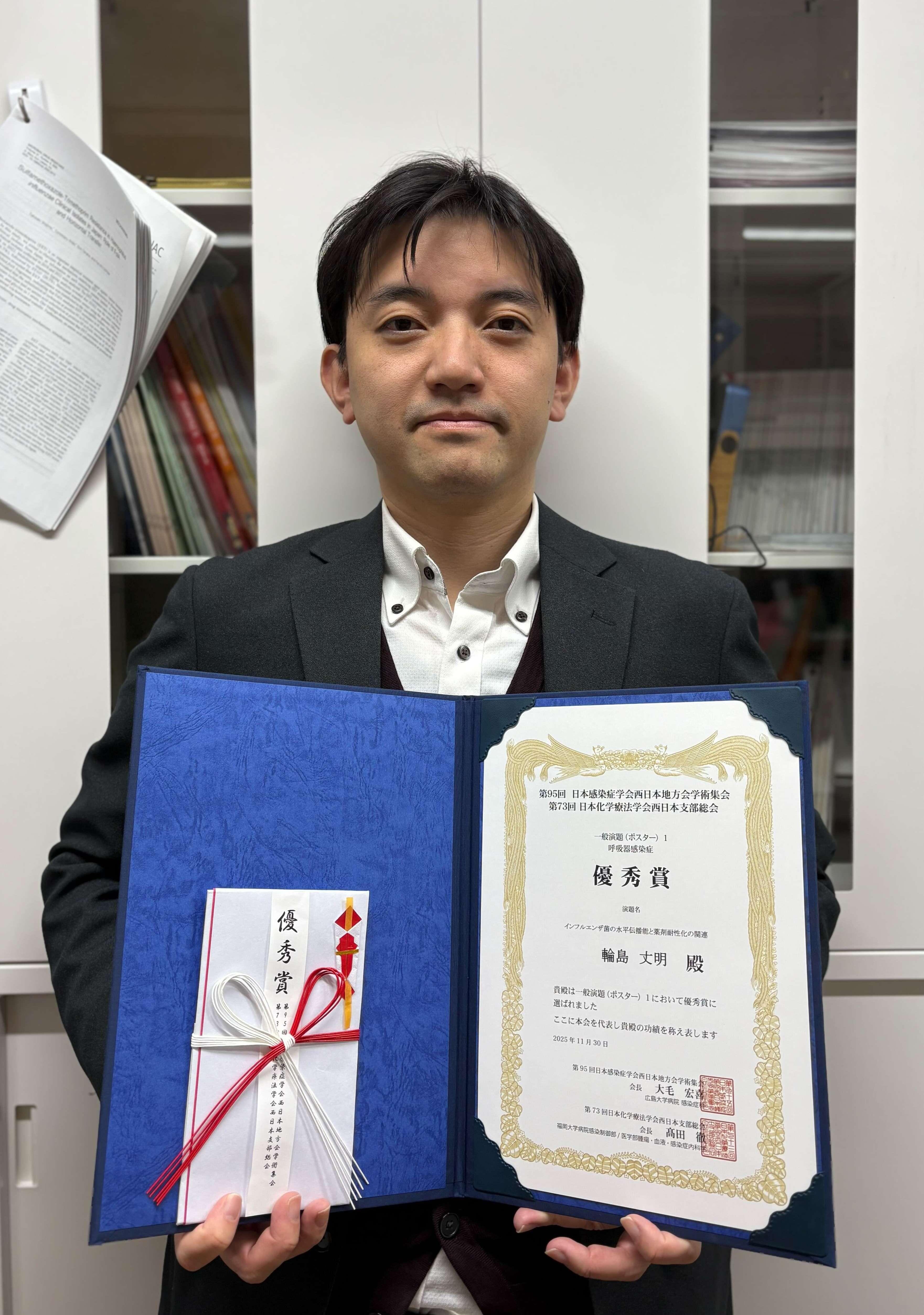 トップページ/受賞 薬学部の輪島丈明准教授が日本感染症学会西日本地方会学術集会と日本化学療法学会西日本支部総会の合同学会の一般演題 (ポスター)で優秀賞を受賞