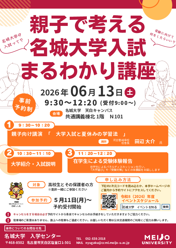 親子で考える名城大学入試まるわかり講座を開催します!!
