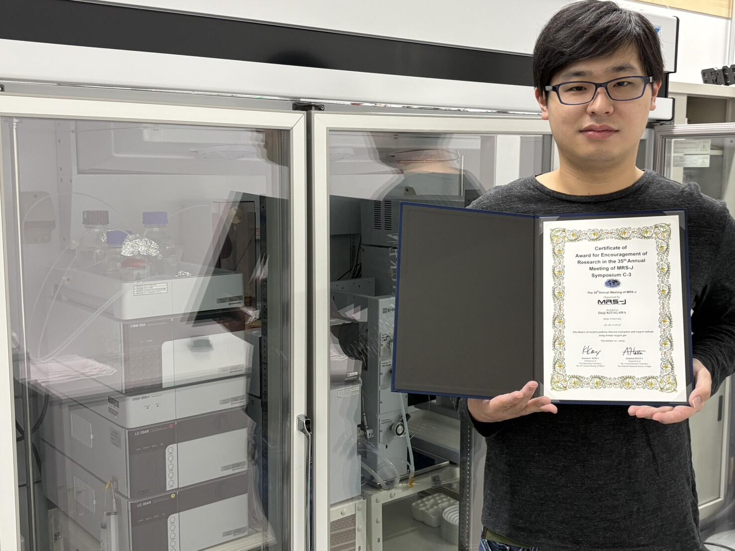 トップページ/受賞 理工学研究科の北川大慈さんが日本MRS年次大会(MRS-J)の国際シンポジウムで Encouragement of research を受賞