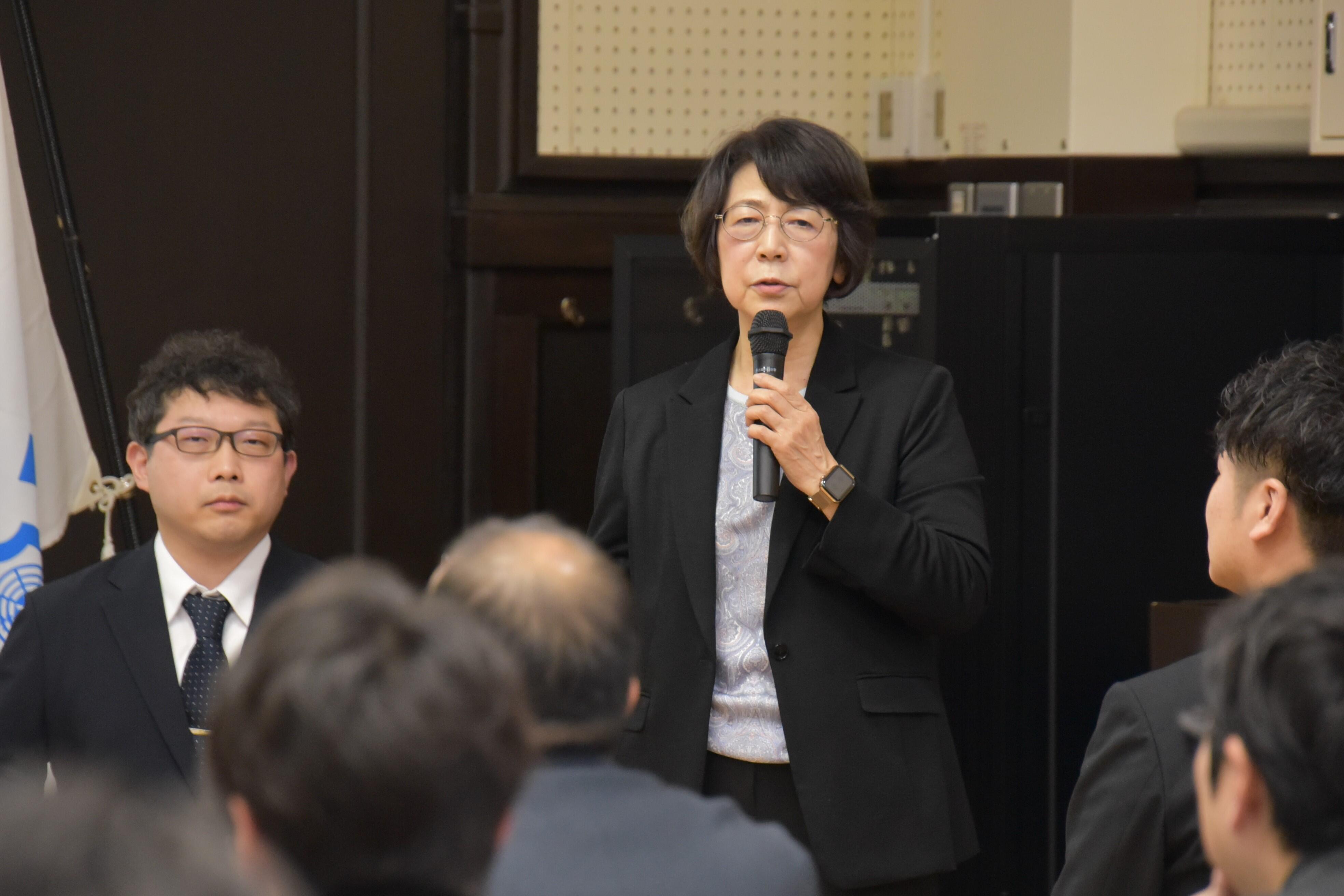 JC東海地区愛知ブロック協議会は、愛知県内に33ある各地の青年会議所の連絡調整機関で、名古屋会議は同協議会の2026年度1年間の活動を発信する場です。今回の講演は「認知されていない地域の魅力を活用した持続的な地域発展の機会を創出する」ことを目的に同協議会内に設置された「グローバル都市愛知創造委員会」の公開委員会として行われましたが、同委員会の米津憲明委員長が2025年9月に愛知県国際展示場で開催された「ツーリズムEXPOジャパン」を訪れた際、出展していた都市情報学部のブースで森准教授のゼミ学生から声を掛けられたことが縁で実現しました。