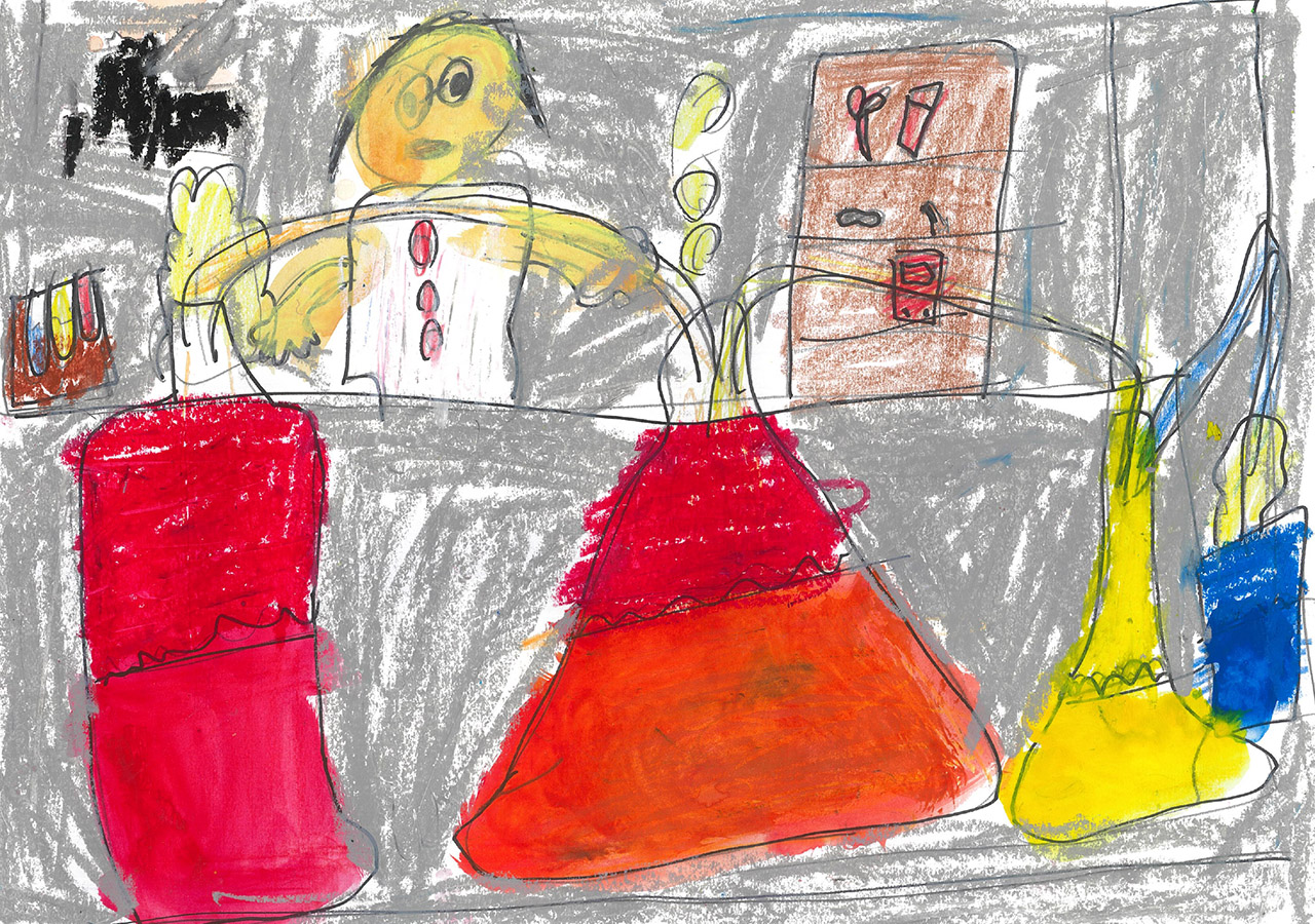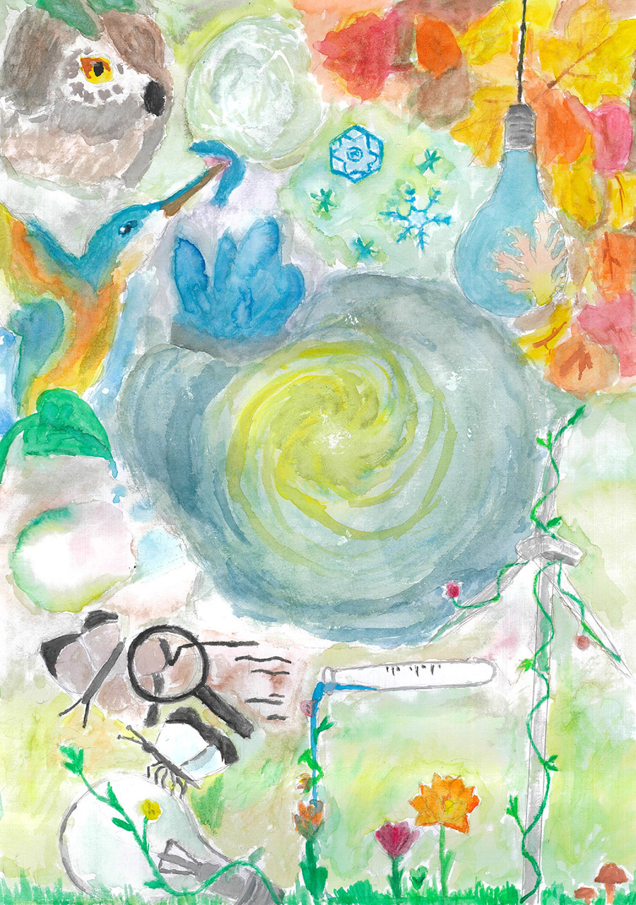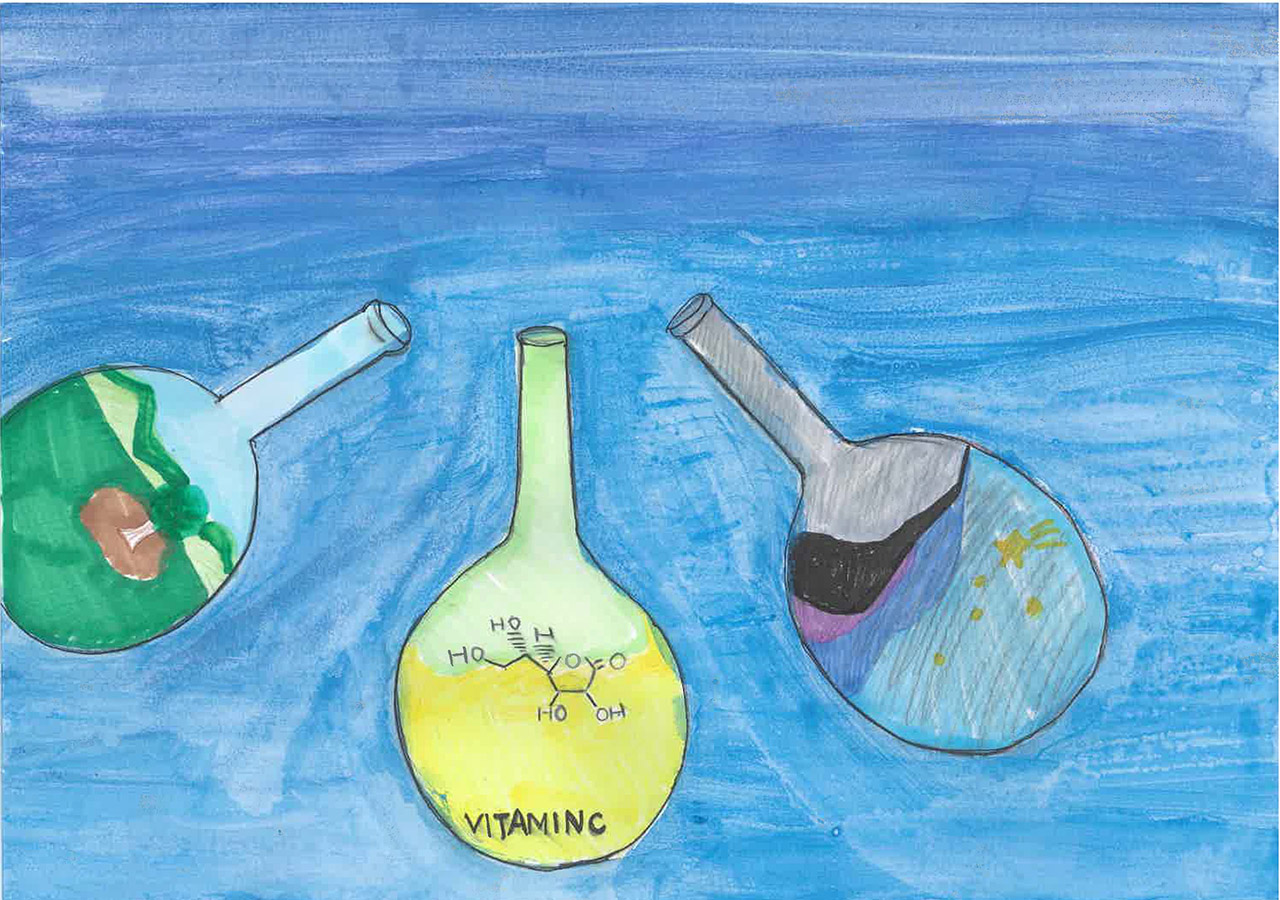『空へ飛び立つまるい「『化学』」』