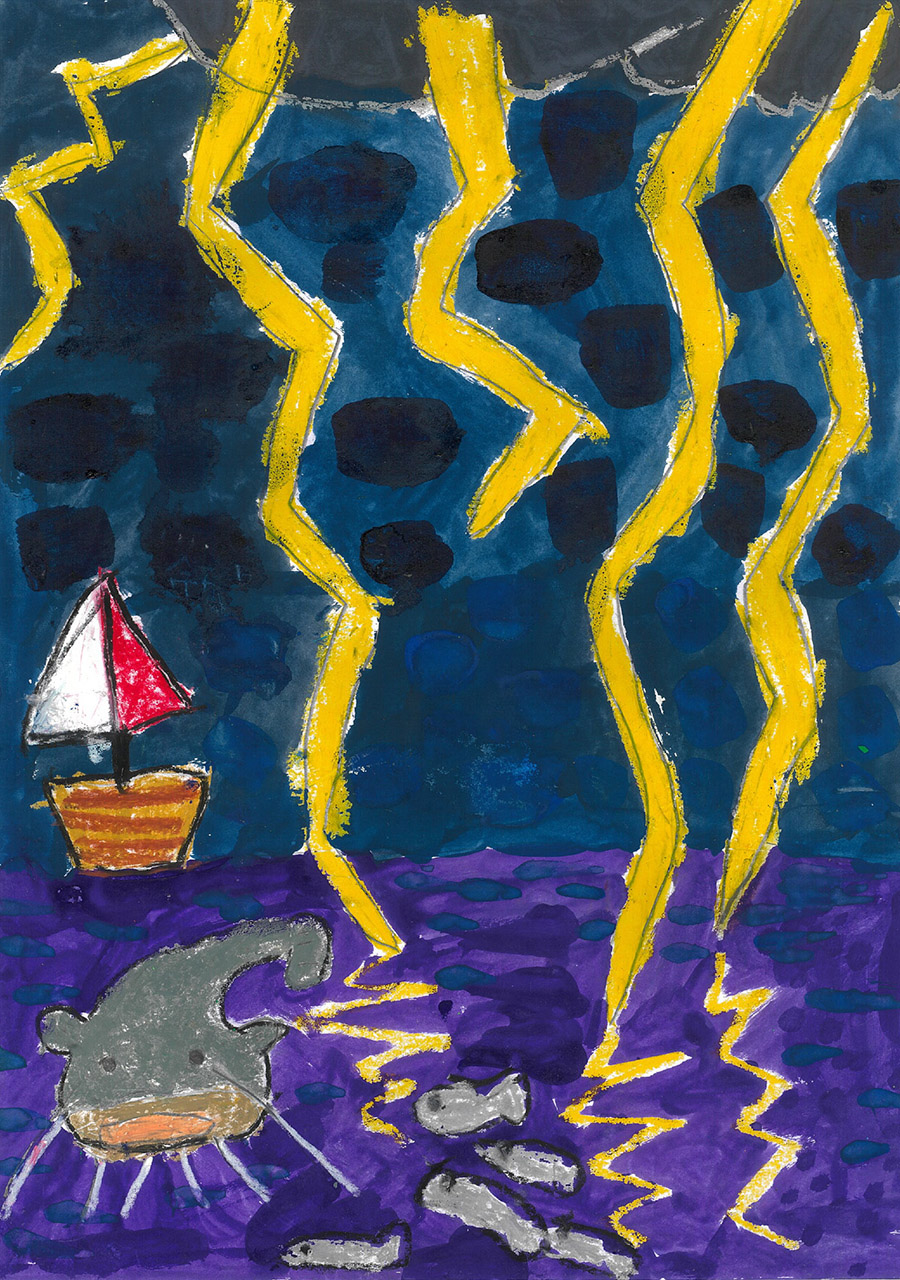 『カミナリがうみや川におちたら、さかなやでんきなまずはビリビリっとするのかな?』