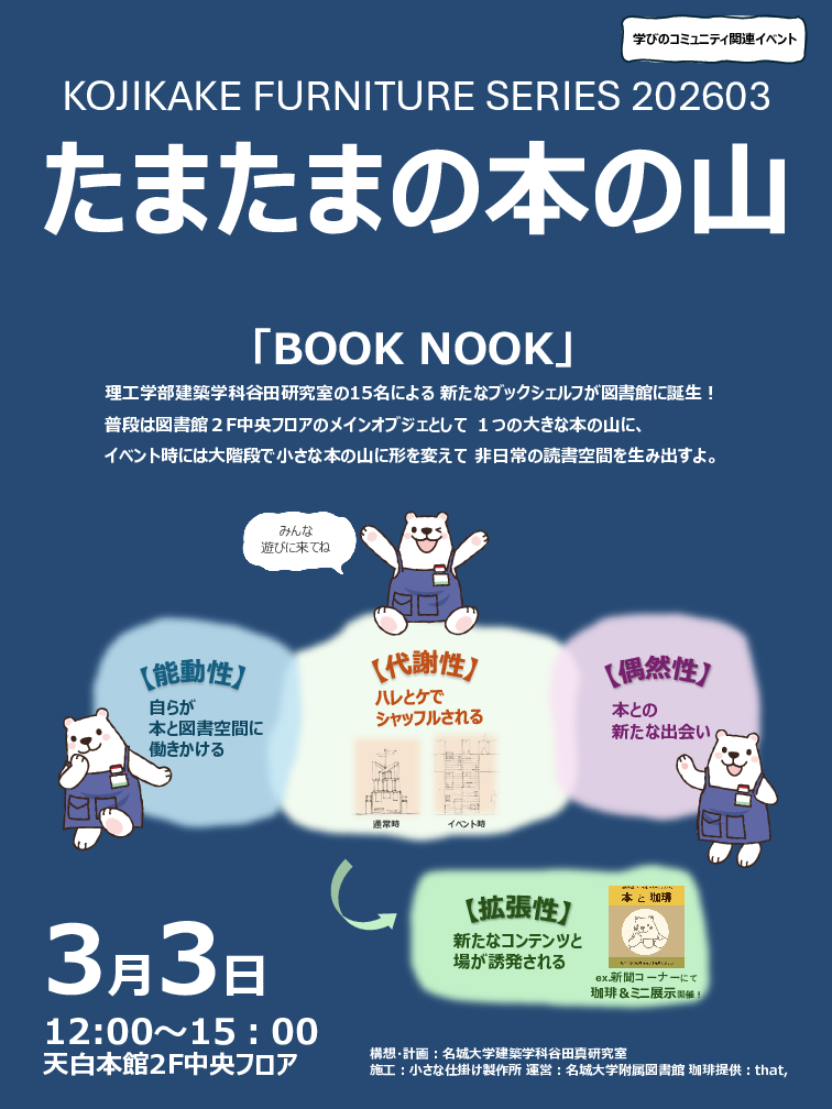 在学生・教職員/ニュース 【イベントのお知らせ】3月3日(火)「たまたまの本の山」~KOJIKAKE FURNITURE SERIES 202603~ 谷田研究室×附属図書館