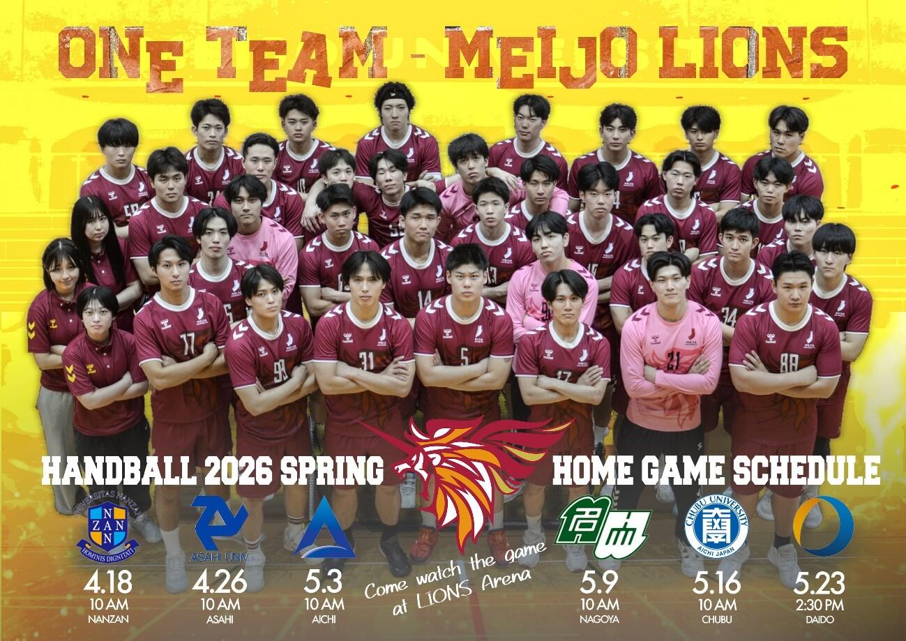 本年度のチームは「自律」をテーマに、選手一人ひとりが主体的に考え、行動することを大切にしてきました。また、LIONS ARENAが完成したことで、より高いレベルでトレーニングに取り組める環境が整いました。春季リーグ戦では、名城大学らしいハンドボールを体現し、一戦一戦全力で戦います。温かいご声援をよろしくお願いいたします。