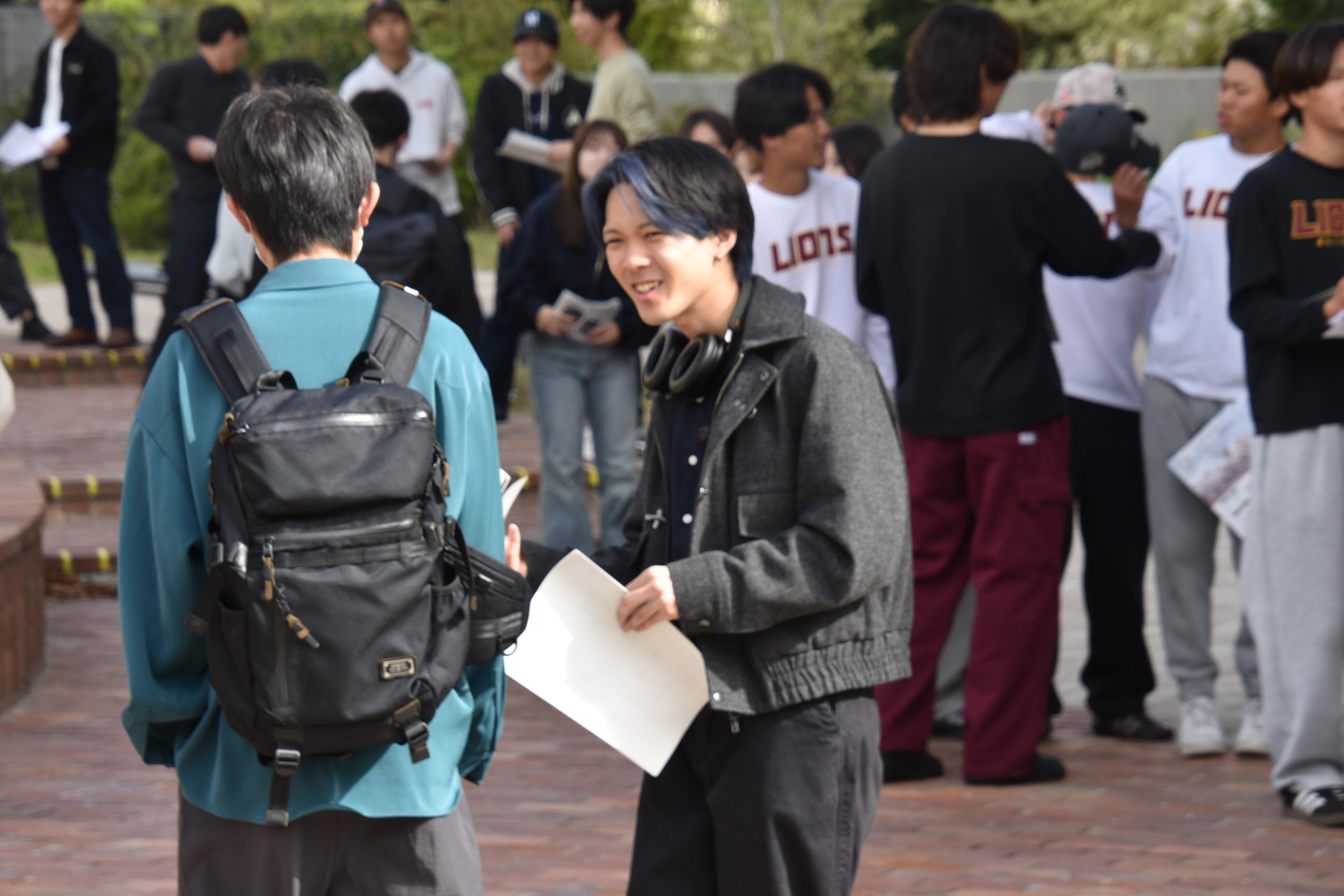 令和8年度の新入生歓迎(新歓)イベントが連日、天白キャンパスのタワー75などで開催されています。大学生活を彩るクラブの選択の参考にしようという新入生たちが、各クラブの魅力を伝えようという熱気あふれる演舞に見入ったり、勧誘ブースで先輩たちに熱心に質問したりしています。新歓イベントは5月初旬まで続きます。