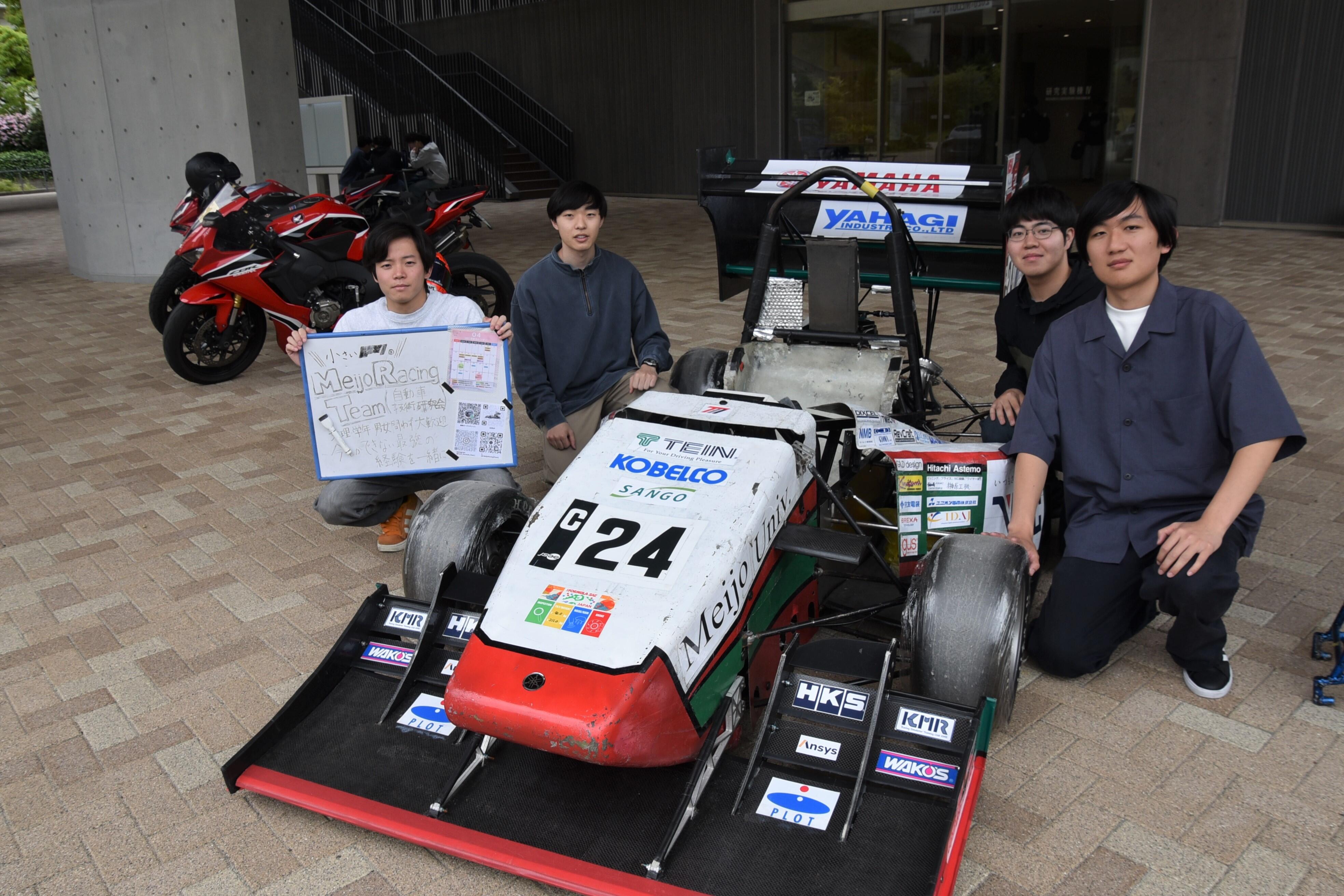 このほか、土日を除く4月16日まで、1限の講義が始まる前の8:30~9:00に研究実験棟Ⅳ前から共通講義棟東前までの間で勧誘ビラの配布も行われ、上級生たちがクラブ名など声を上げながらビラを配っています。また、天白キャンパス内では自動車技術研究会やバイクサークル、美術部などの展示も行われています。