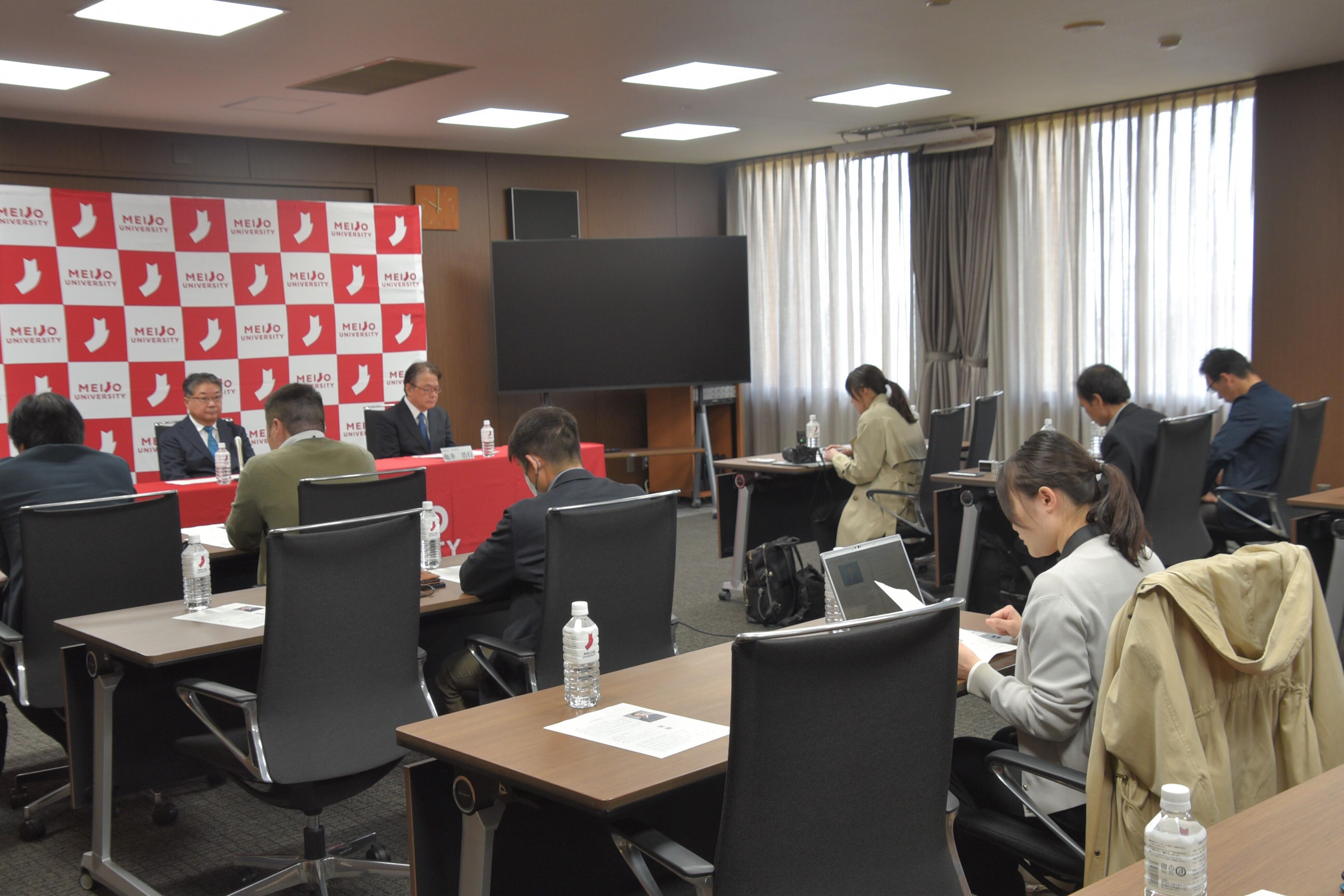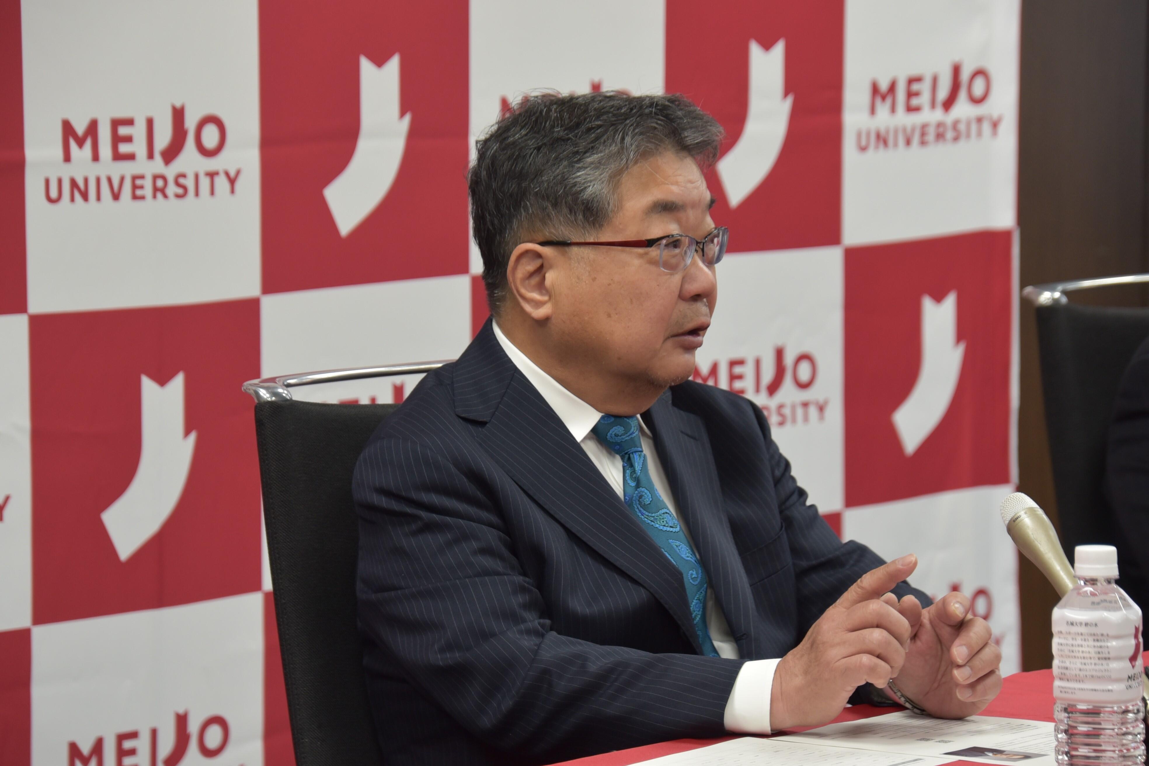 続いて、森教授が「京都大学に27年いましたが、熱心にお誘いいただいたので、この4月からこちらでお世話になることになりました。よろしくお願いします」とあいさつ。記者からの質疑応答に入り、まず名城大学の印象を聞かれると、森教授は「規模が大きな大学で、薬学部の学生も人数が非常に多い。元気が良く、礼儀正しい学生ばかりで、きちんとあいさつをしてくれます」と笑顔で答えました。