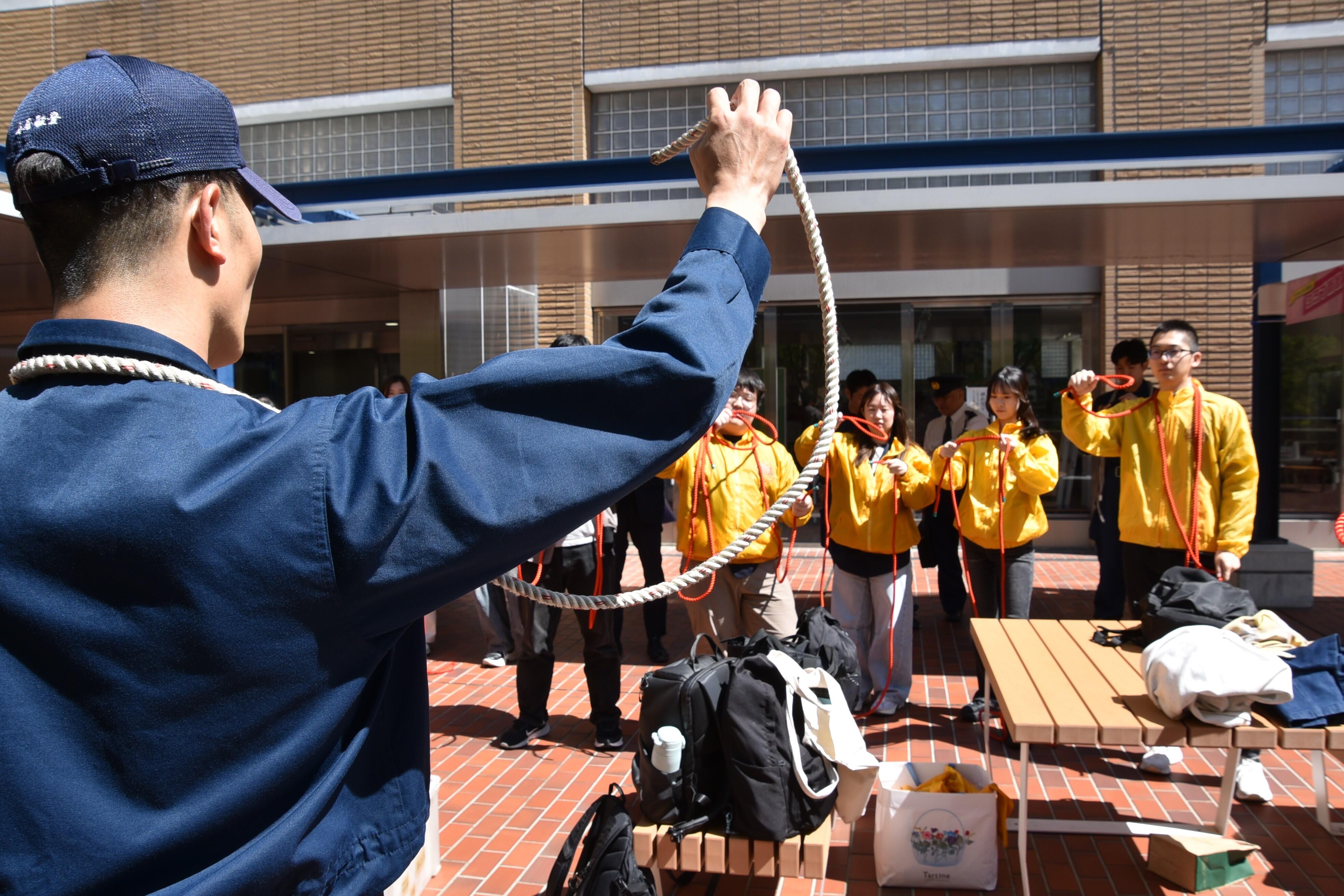 学生20人が参加 災害救助の経験豊富な天白署員から5種類の結び方を学ぶ
