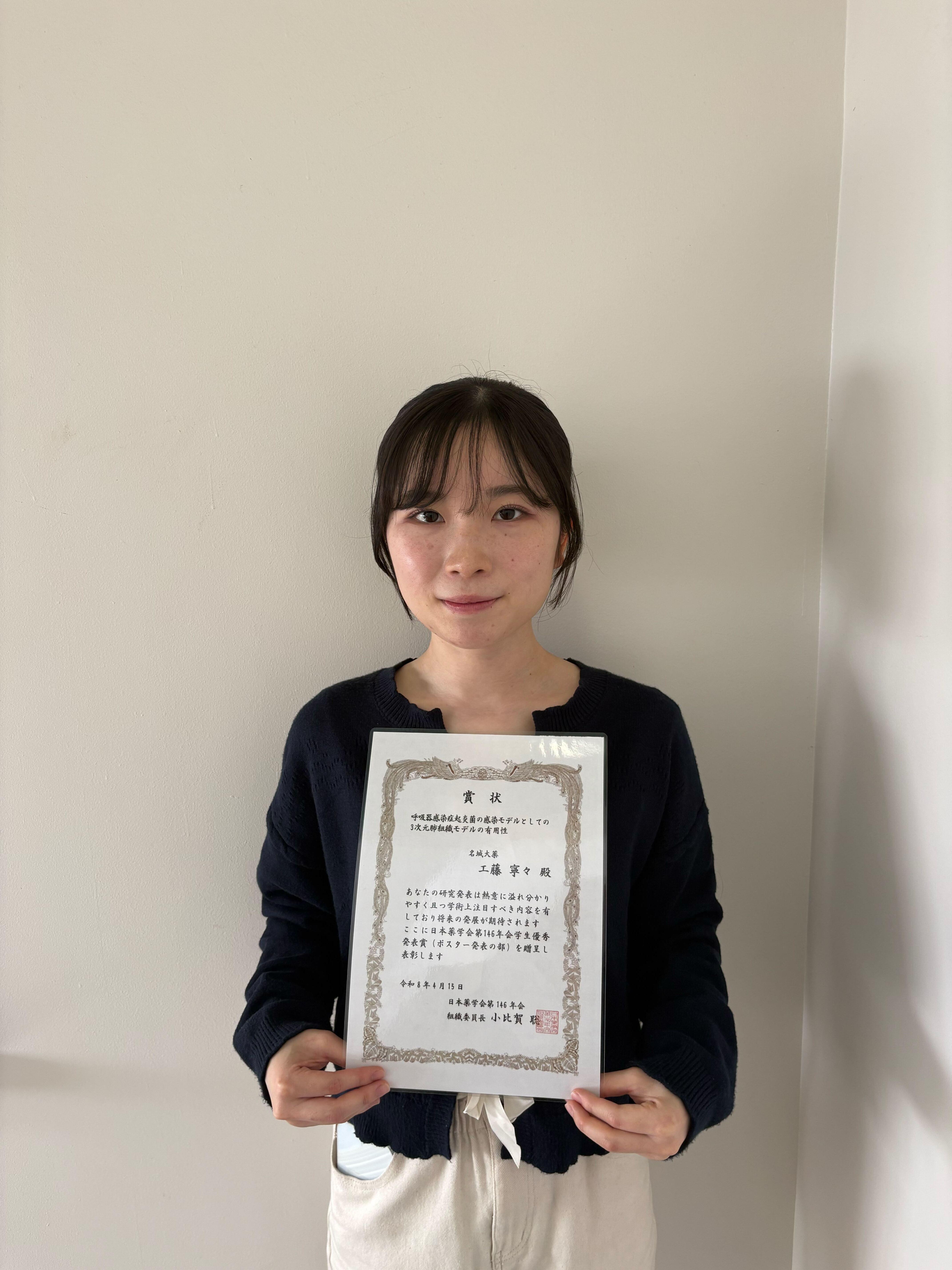 トップページ/受賞 薬学部の工藤寧々さんが日本薬学会ポスター発表の部で学生優秀発表賞を受賞