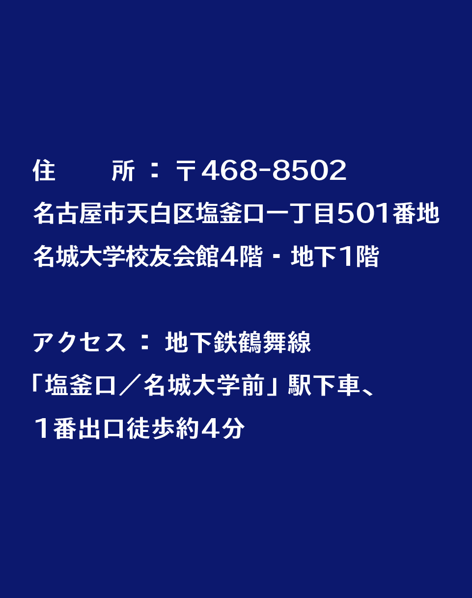 〒468-8502 名古屋市天白区塩釜口一丁目501番地
