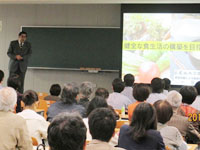 薬食同源による健康研究センターの研究代表者である農学部の小原章裕教授が日本人の死亡原因と分子レベルからみた生活習慣病、食生活によるがんの予防等の説明から、健全な食生活を構築することがいかに大切であるかを講演しました。