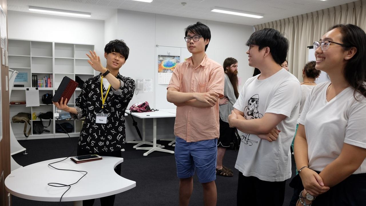 今年もアメリカや香港からMeijo Summer Schoolに参加した留学生11名に対して、宮崎ゼミ(コミュニケーション学)のゼミ生がそれぞれの研究テーマをポスター形式にまとめ、その成果を英語で発表しました。発表はiPadを使いながら行うもので、英語発表という言語だけではなく、従来の紙でのポスターとは違うやり方を通じて「伝え方」を意識した発表となりました。