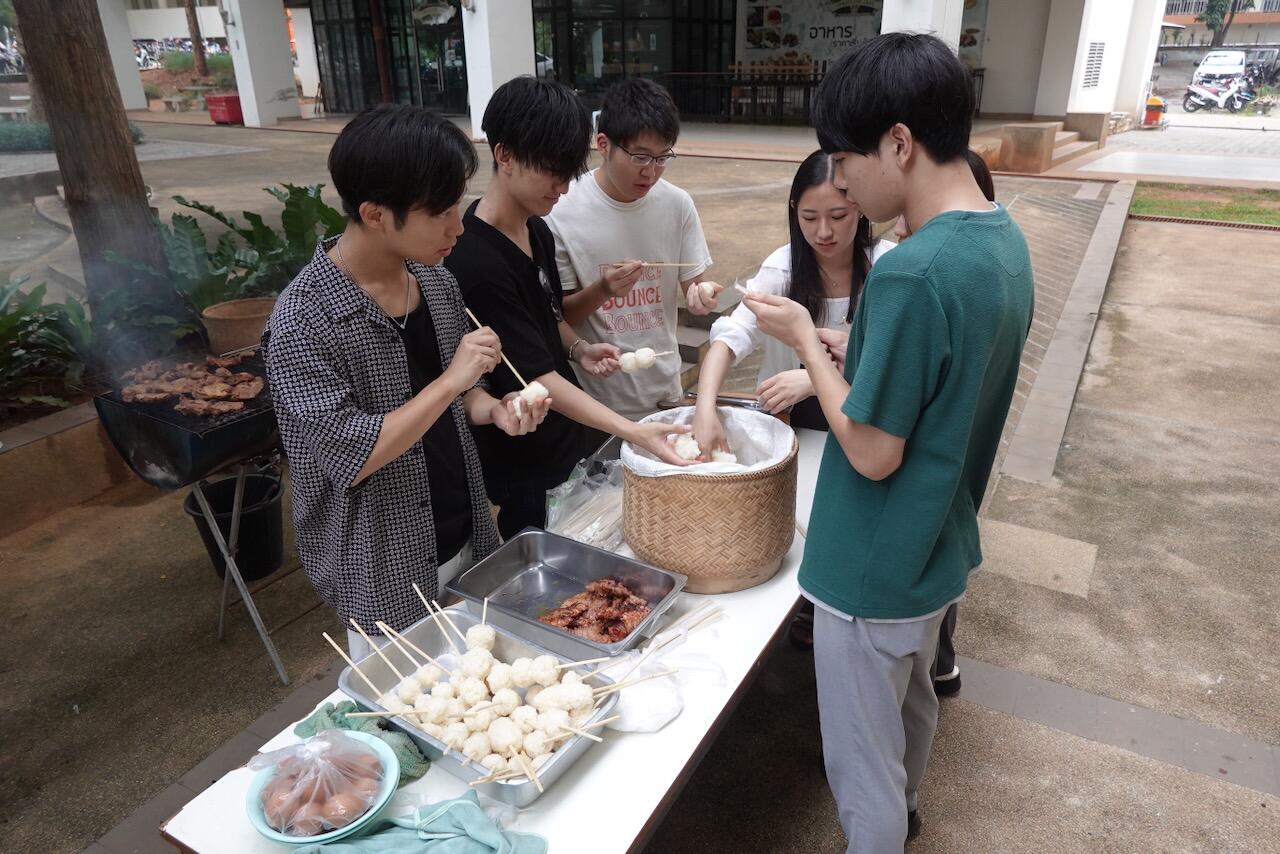 発表のあとはフェアウェルパーティーの準備です。みんなでカレー作りなど。タイの慣れないまな板や包丁を駆使して、60人分のカレーを作りました。