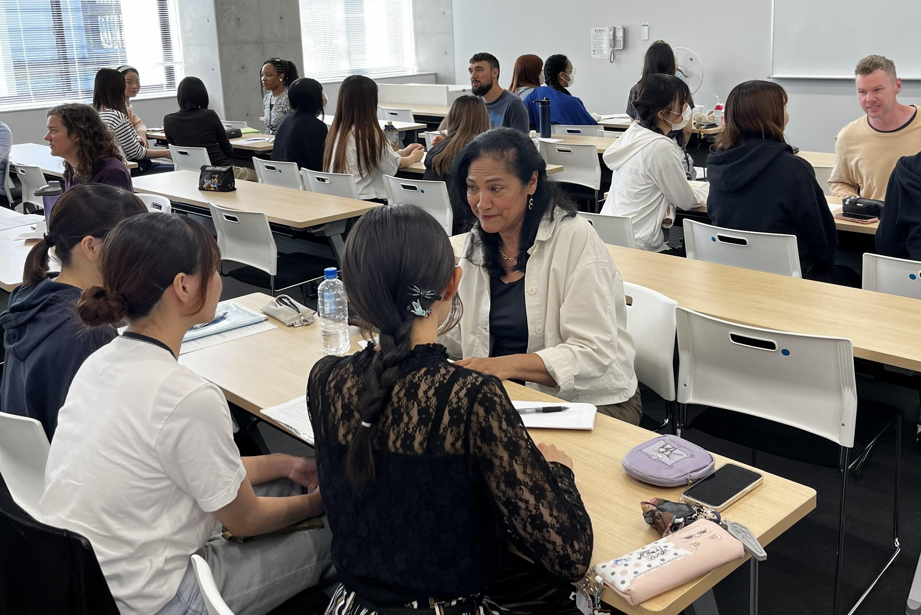 A career consultant and his team from the United States visited students in the English Discussion course on October 17. Students discussed their career ambitions and dreams for the future, and received advice on how to lay a foundation for career success while still at university. Afterwards, some of the participants went to a nearby restaurant for lunch. (Wicking-sensei)