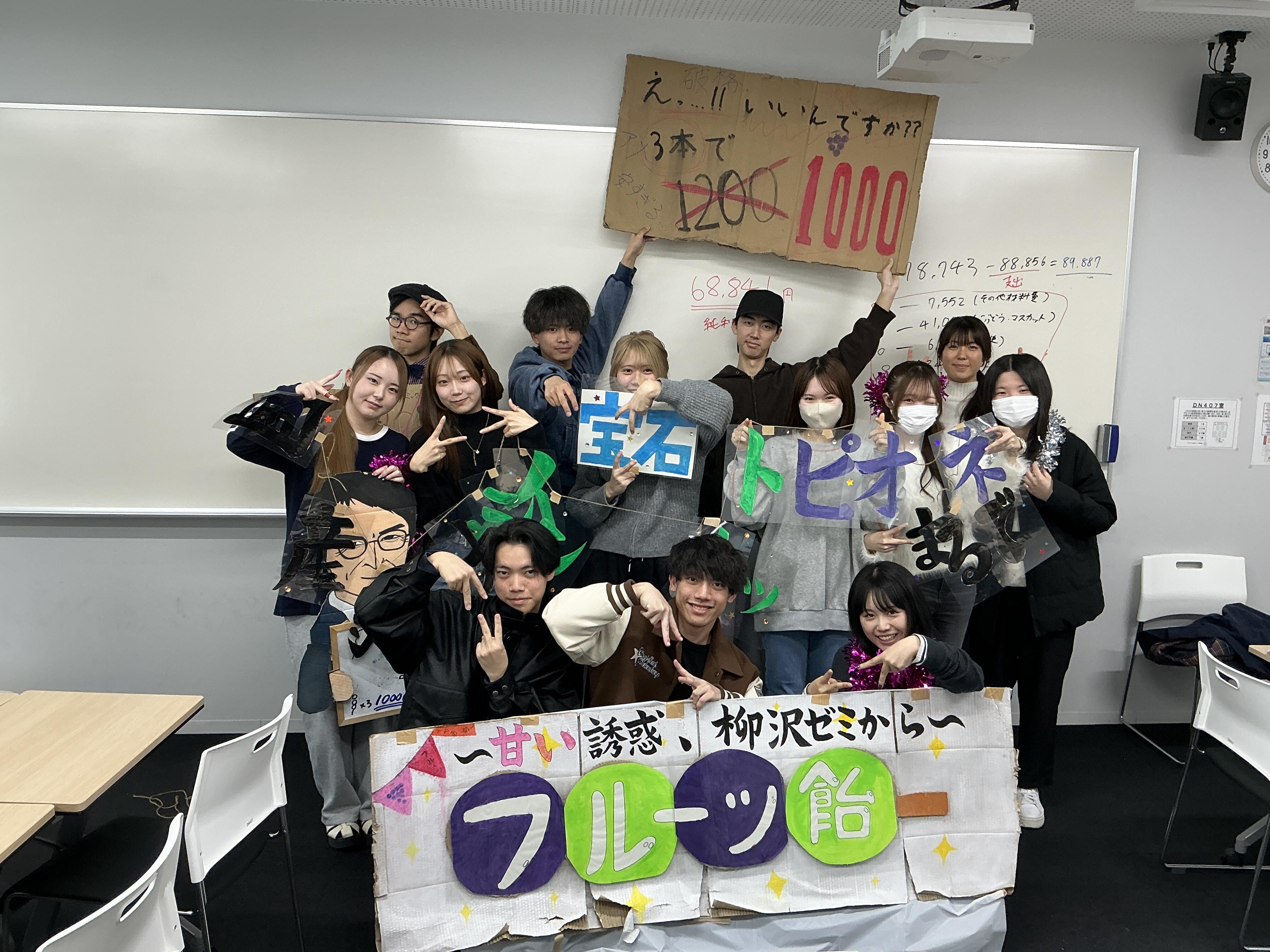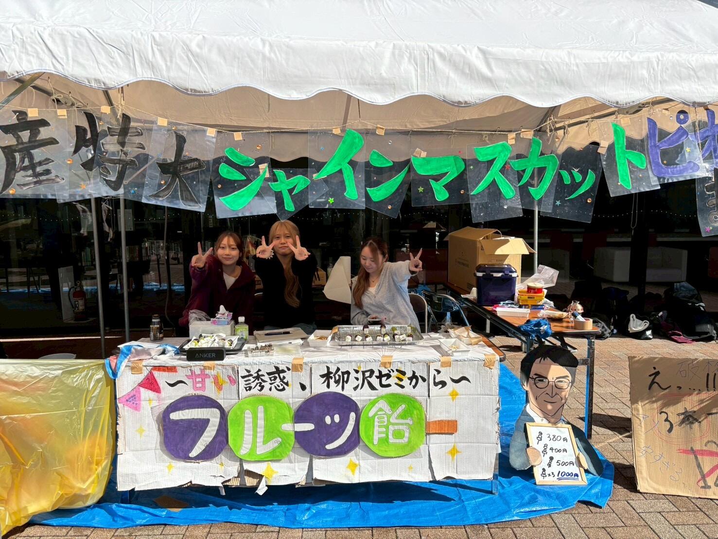 10月31日、11月1日の二日間で名城大学大学祭が開催されました。今年の柳沢1年ゼミの学生たちは自分たちで企画した模擬店で、フルーツ飴を販売しました。連日多くの方にご購入いただきました。前期のFSPの授業で得た知識を実践する良い機会になったようです。