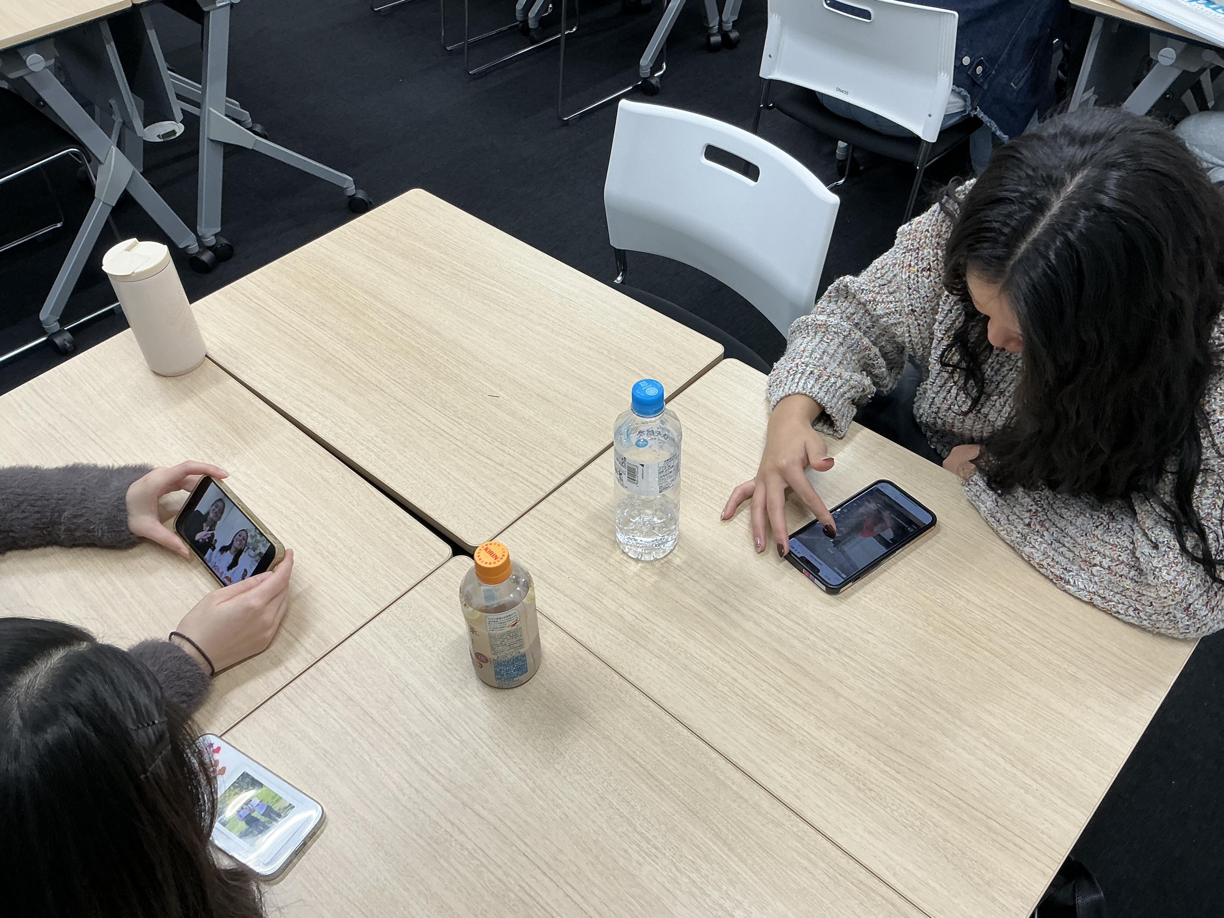 The 12 third-year students in Yanagisawa’s seminar were first divided into four groups, labeled A through D, and created self-introduction videos in English. They uploaded the links to these videos on Google Classroom. Similarly, 6 students from Valencia College also uploaded their self-introduction videos, allowing for introductions to be exchanged through video.)