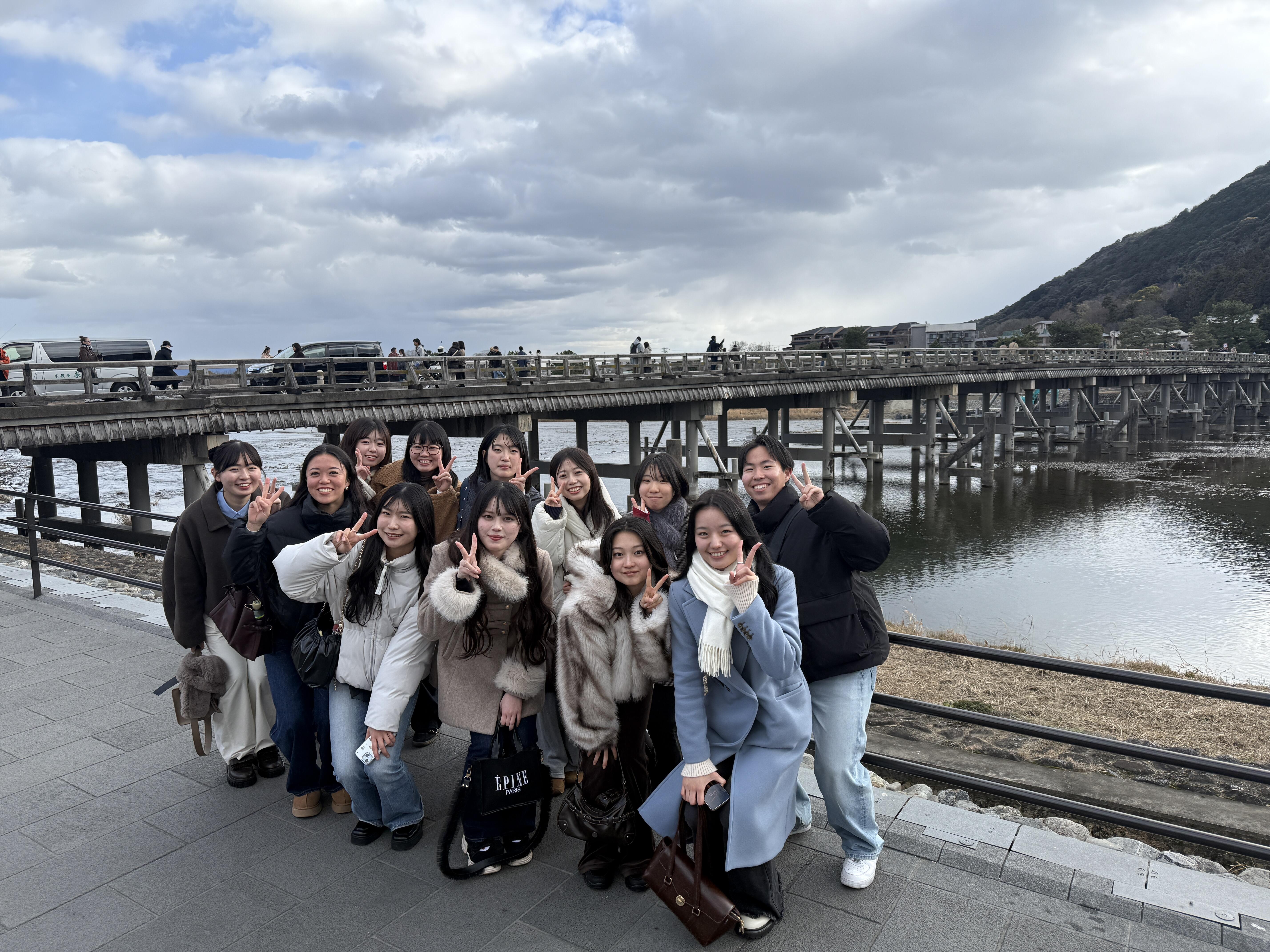 午後は、多くのアニメ作品の舞台となっている嵐山・渡月橋へ。日本有数の観光地でのフィールドワークを通じ、日本のコンテンツ産業の中核をなす「アニメ」と「聖地巡礼(コンテンツツーリズム)」の関係について理解を深めました。