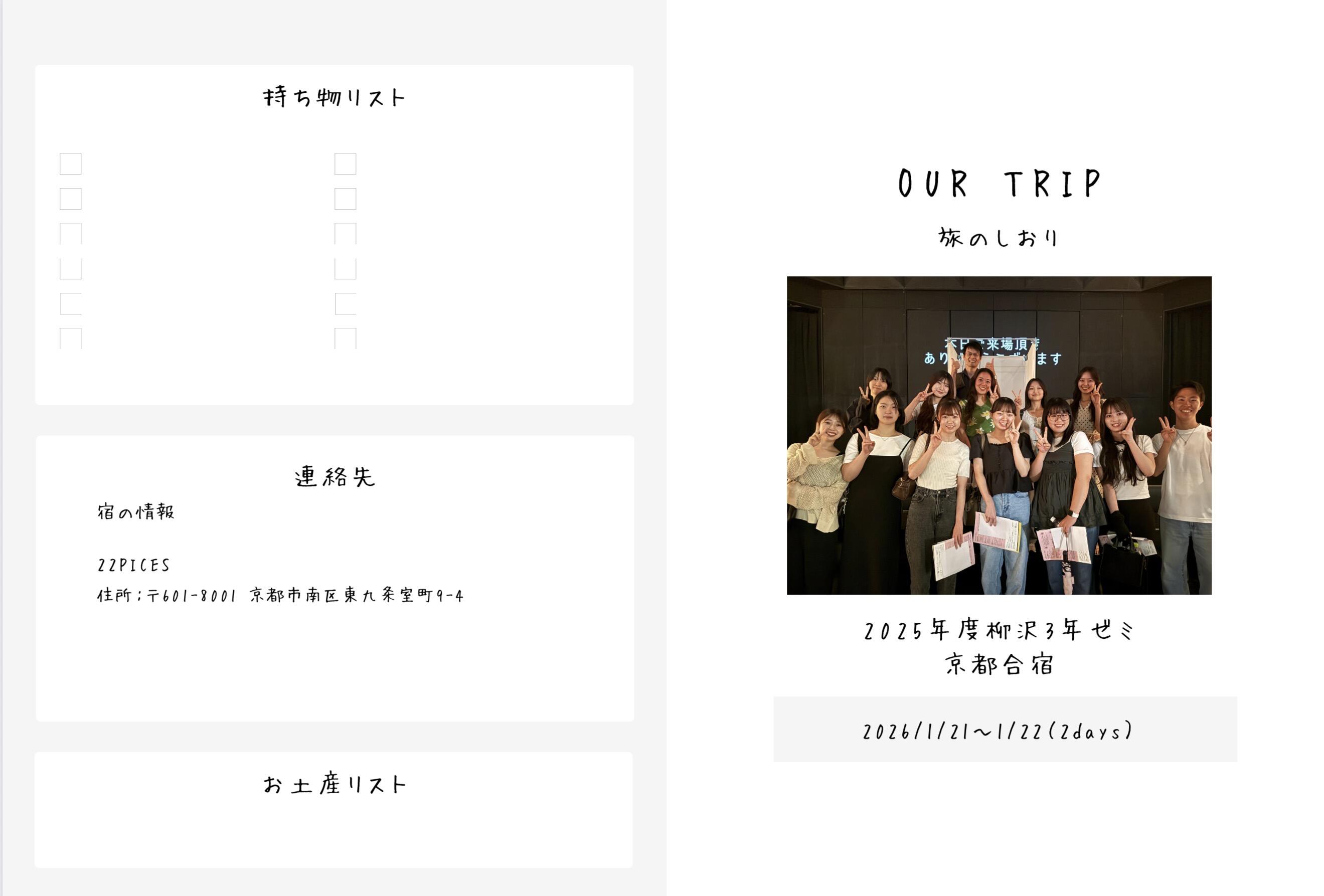 2026年1月21日~22日、柳沢3年ゼミ(12名)は、京都にて1泊2日のゼミ合宿を行いました。