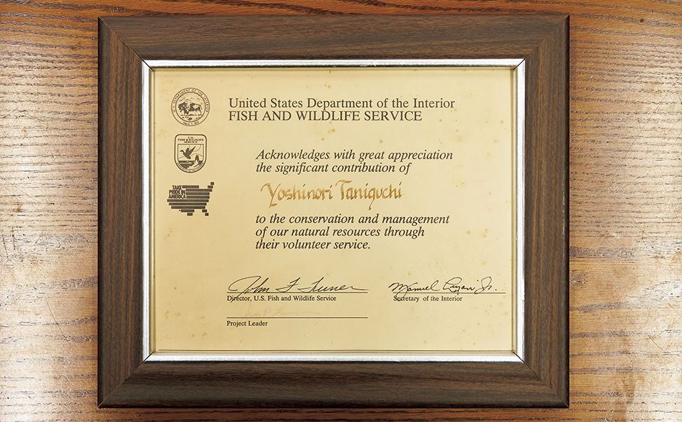 アラスカでのボランティア活動の参加後に授与された感謝状。今も研究室に大切に飾られている。